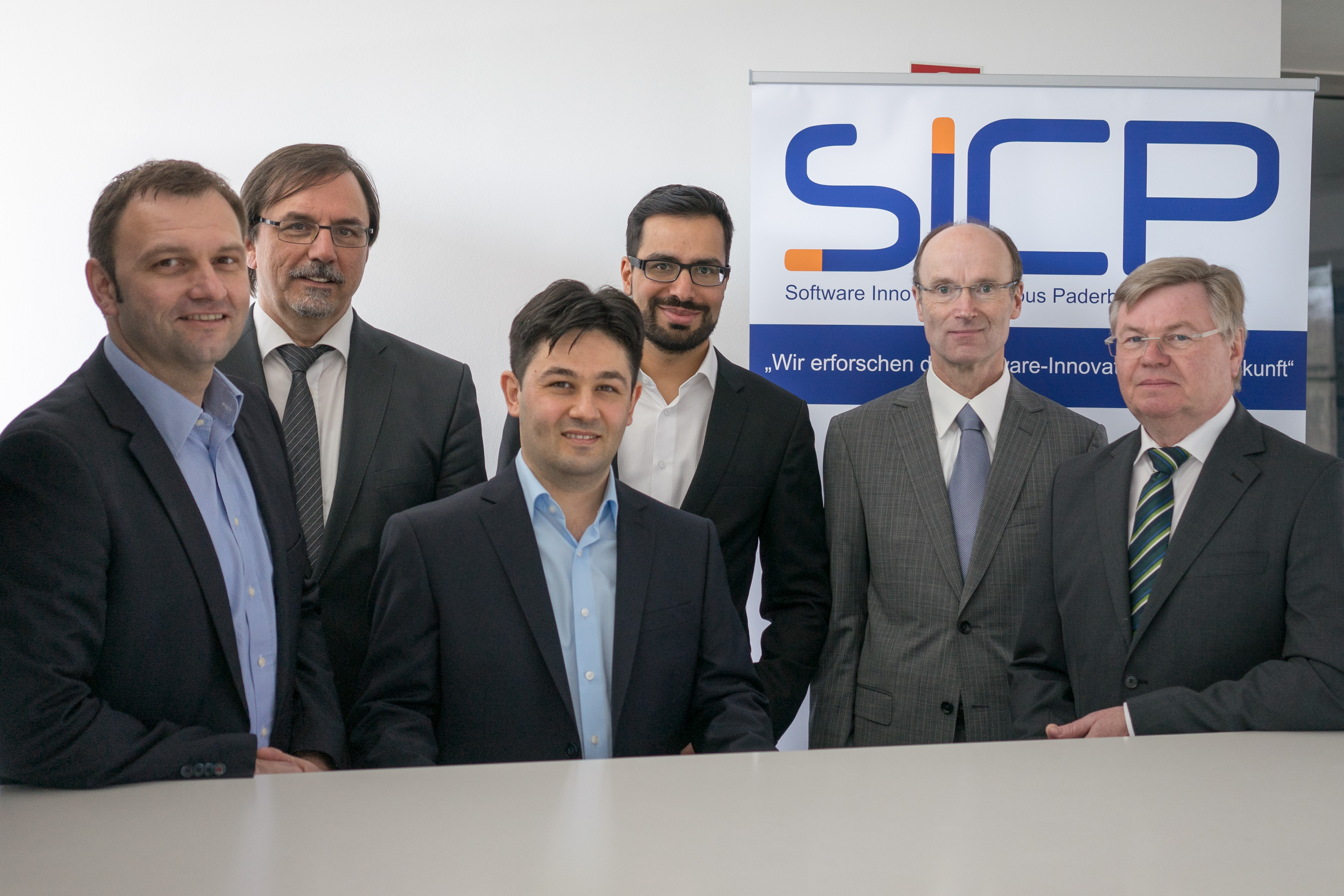 Foto (S&N CQM): Freuen sich über den erfolgreichen Start: Dr. Stefan Sauer (Geschäftsführer s-lab), Prof. Dr. Gregor Engels (Vorstandsvorsitzender s-lab und Sprecher SICP), Dr. Baris Güldali, Dr. Masud Fazal-Baqaie, Uwe Bröker (Geschäftsführer S&N CQM) und Josef Tillmann (Geschäftsführer S&N INVENT).