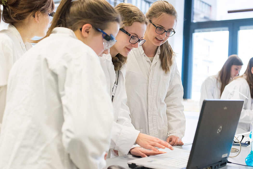 Foto (Universität Paderborn): Schülerinnen experimentieren während der Frühlings-Uni.