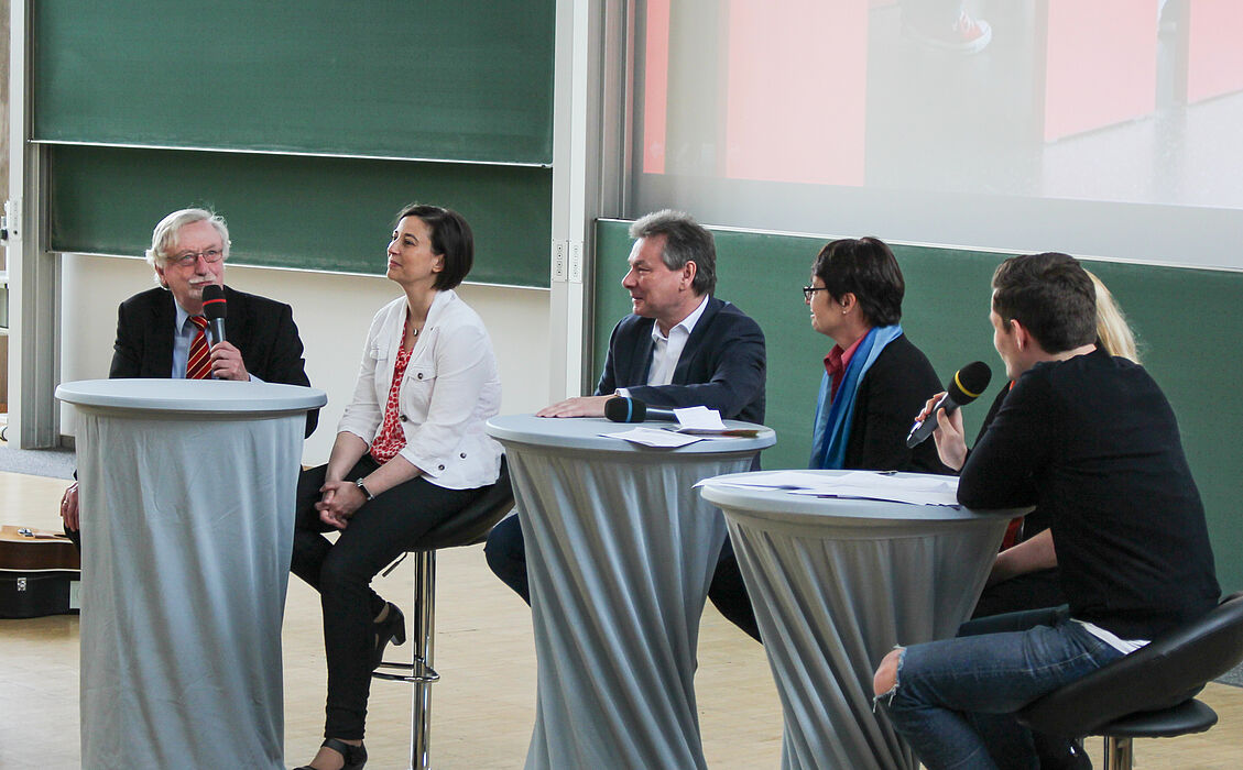 Prof. Dr. Birgit Riegraf, Vizepräsidentin für Lehre, Studium und Qualitätsmanagement, begrüßte die neuen Studierenden im Rahmen einer Gesprächsrunde, die von Julius Erdmann, Student und Mitglied der Debating Society Paderborn, moderiert wurde. Gemeinsam mit dem stellvertretenden Bürgermeister von Paderborn, Dietrich Honervogt, Prof. em. Dr. Dr. h. c. mult. Peter Freese, erster Vorsitzender des Vereins Alumni Paderborn, Dr. Yvonne Koch, Leiterin der Zentralen Studienberatung (ZSB), und Janina Beckmeier, Vorsitzende des Allgemeinen Studierendenausschusses (AStA), stand sie Rede und Antwort zum Thema Studium in Paderborn. „Ich heiße Sie herzlich an der Universität Paderborn willkommen“, sagte Riegraf und stellte anschließend die Campus-Universität mit ihren kurzen Wegen und den fünf Fakultäten vor.