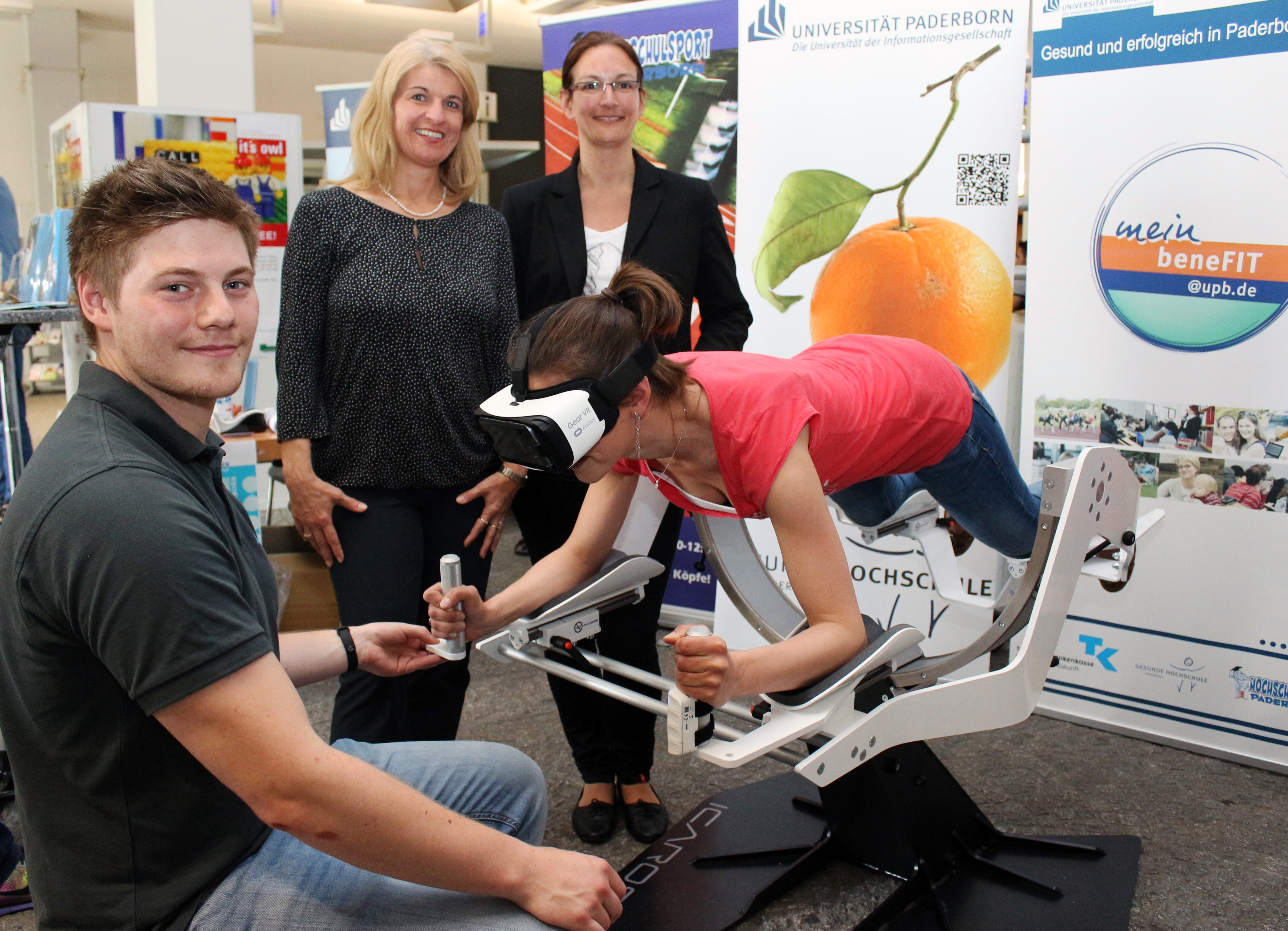 Mit gutem Beispiel ging auch Simone Probst, Vizepräsidentin für Wirtschafts- und Personalverwaltung der Universität Paderborn, voran. Sie ließ sich im Rahmen eines Messerundgangs ausgiebig informieren. „Die Gesundheitstage sind eine wunderbare Veranstaltung, die unser Engagement im Bereich der Gesundheitsförderung für Studierende und Mitarbeitende unterstreichen“, lobte Probst das etablierte Konzept, „um das uns viele andere Hochschulen beneiden.“
