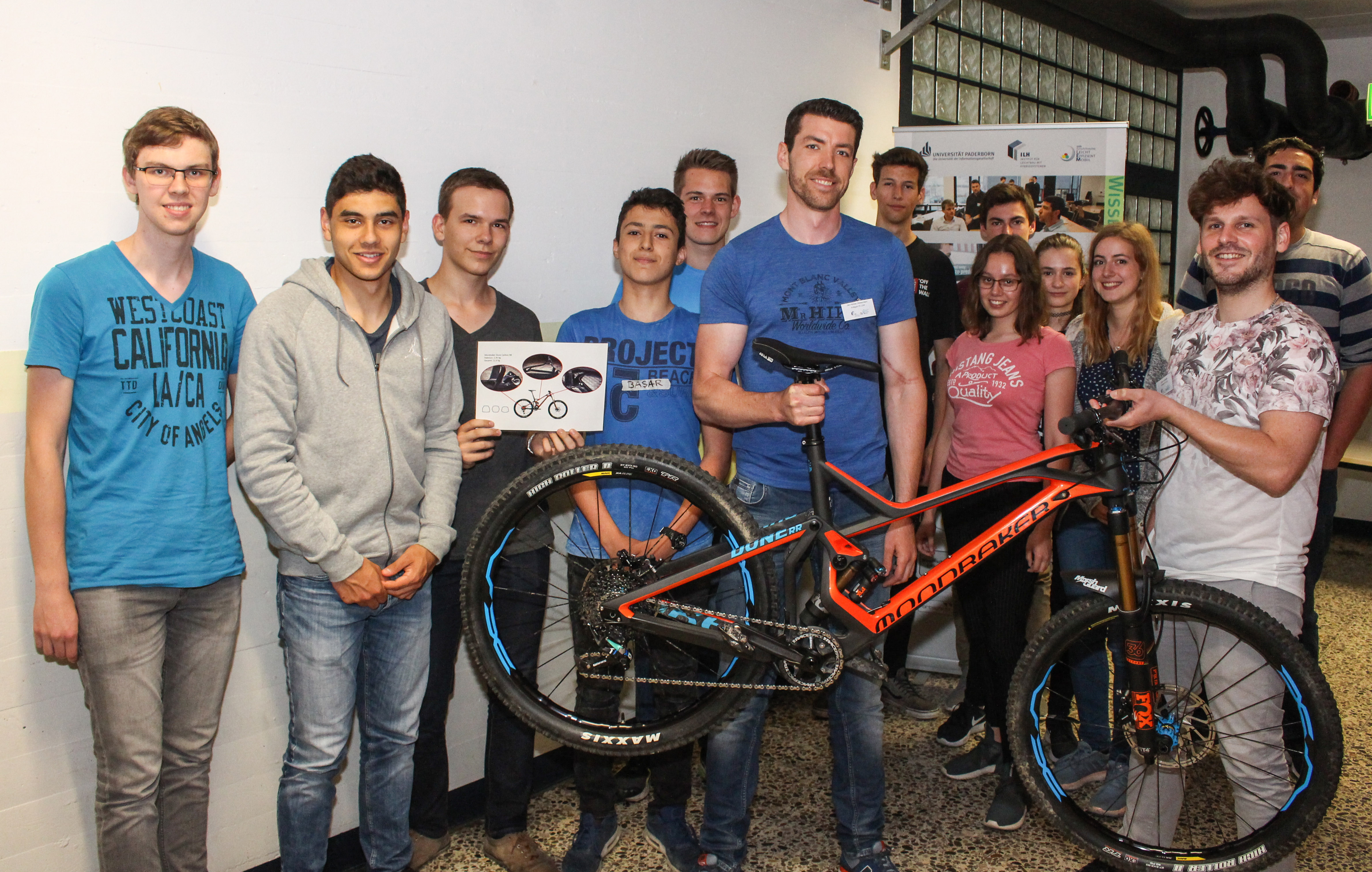 Nicht nur an diesem Thementisch werden fleißig Ideen gesammelt. 60 Oberstufenschüler/innen von Berufskolleg und Gymnasium diskutieren in einem Seminarraum gemeinsam mit 15 Doktorandinnen und Doktoranden aus dem Fortschrittskolleg Leichtbau über die Mobilität der Zukunft. Es ist eine Win-Win-Situation: Die Jugendlichen lernen aktuelle Forschungsprojekte kennen und dürfen den Wissenschaftlern Löcher in den Bauch fragen. Die Doktoranden wiederum bekommen von den Schülerinnen und Schülern praxisnahe Denkanstöße zu ihren Forschungsthemen. „Die Sportgeräte, die sich die Jugendlichen für mobilitätseingeschränkte Menschen überlegt haben, sind für uns Leichtbauer sehr interessant“, sagt Dr. Silvia Dohmeier-Fischer, Geschäftsführerin des Instituts für Leichtbau mit Hybridsystemen.