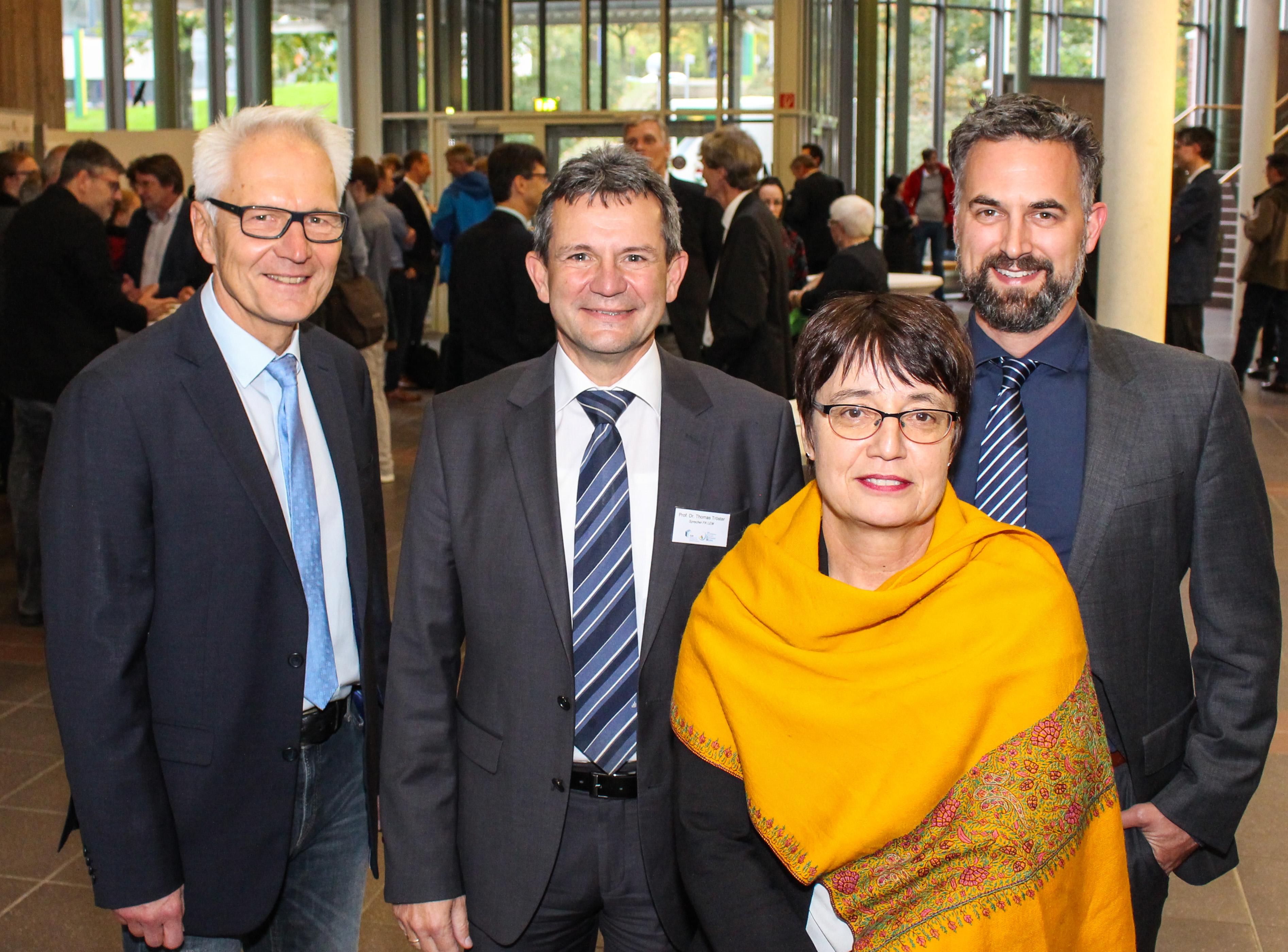 Foto (Universität Paderborn, Johannes Pauly): (v. l.) Martin Pantke, Prof. Dr. Thomas Tröster, Prof. Dr. Birgit Riegraf und Prof. Dr. Anders Levermann.