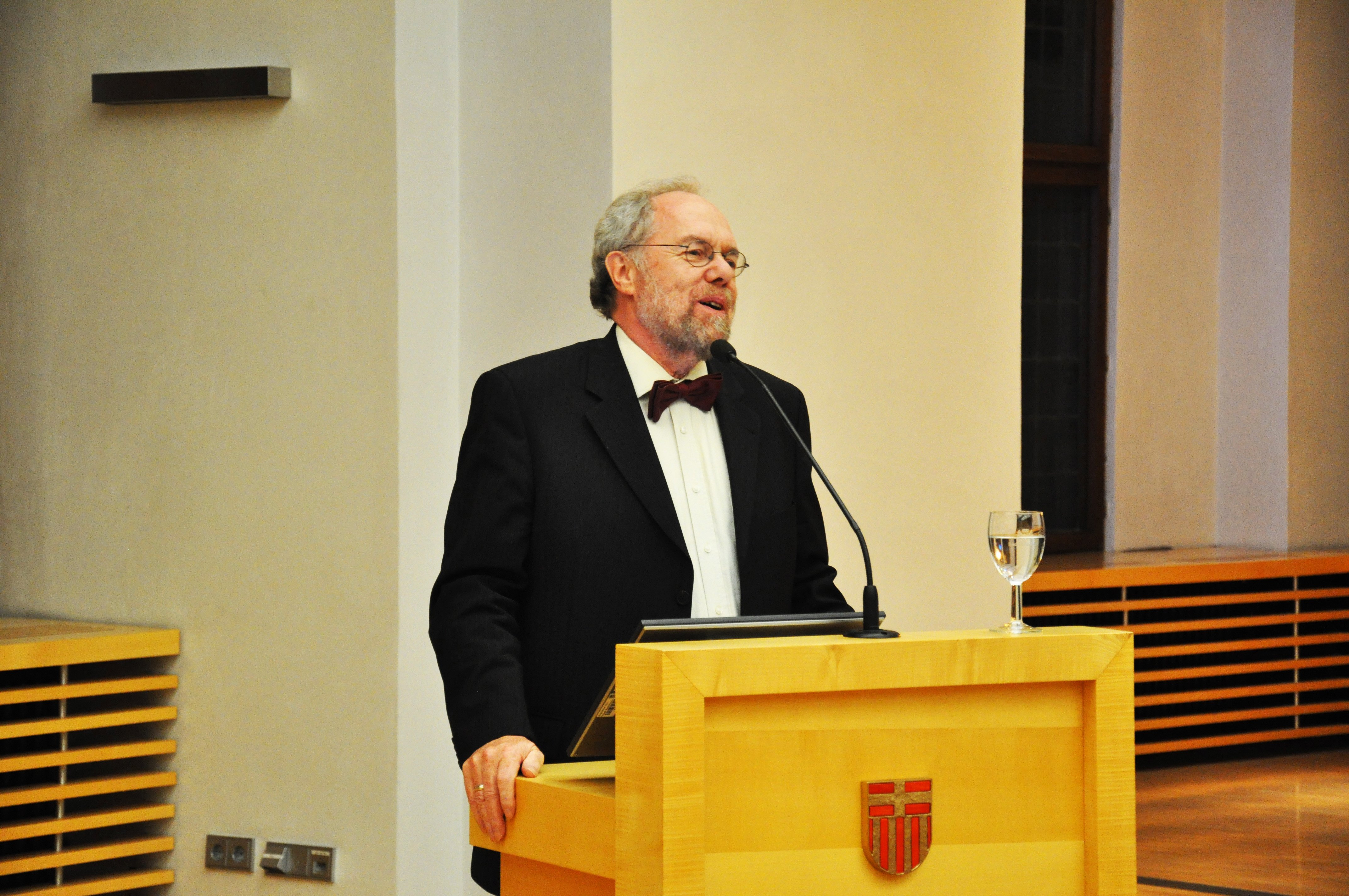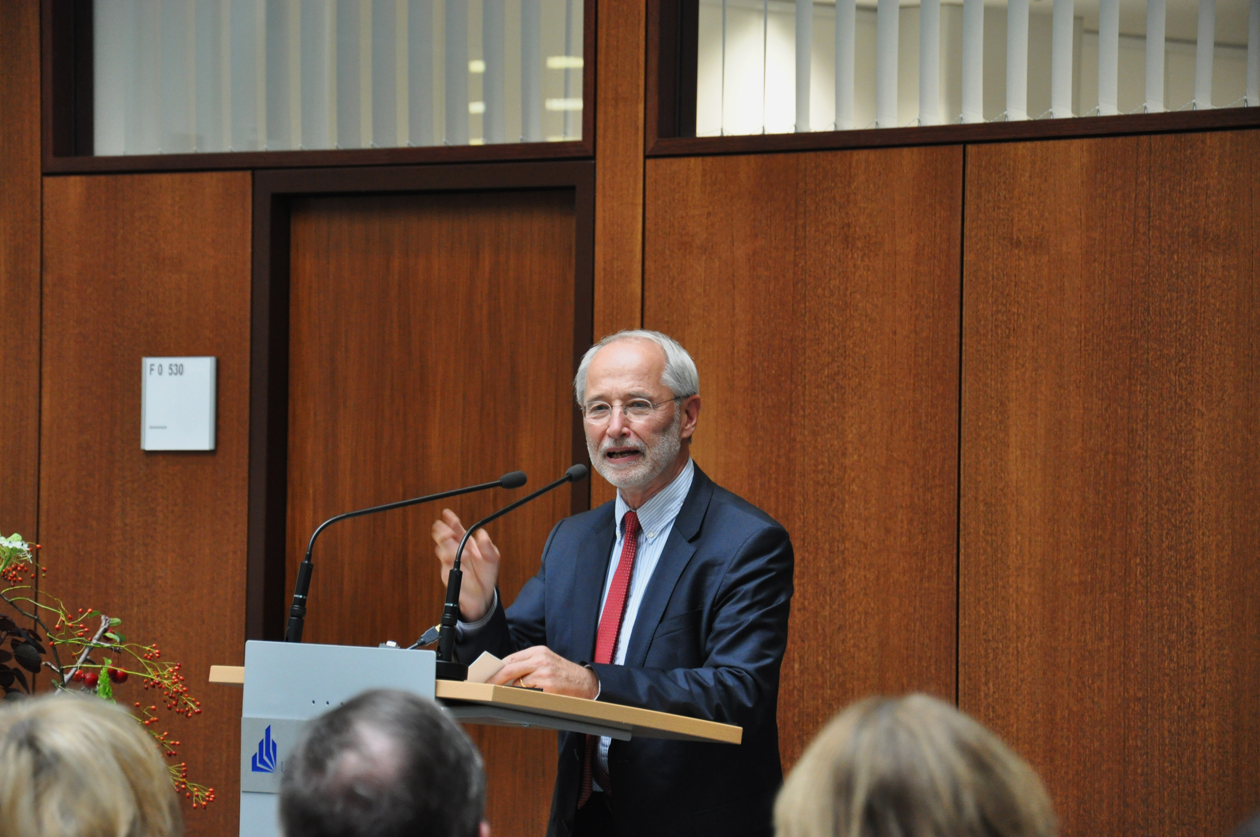 „Was ist also eine Laudatio?“, fragt Prof. em. Dr. Rafael Capurro, Hochschule der Medien Stuttgart. „Eigentlich: eine öffentliche Liebeserklärung.“ Liebe sei für die Menschen ein sehr starkes Band. Und Christiane Floyd sei stark in der Ethik der Informatik und Softwareentwicklung gewesen – eine Pionierin auf dem Gebiet. Man meine immer, Ethik und Informatik würden nicht zusammenpassen – Floyd beweise das Gegenteil.