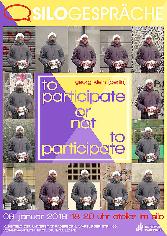 Ist Partizipation künstlerisch sinnvoll? Und wenn ja, wie kann sie gelingen? Darüber spricht der Berliner Klang- und Medienkünstler Georg Klein am Dienstag, 9. Januar, von 18 bis 20 Uhr, im Atelier des Kunstsilos der Universität Paderborn. Der Vortrag „to participate or not to participate“ ist Teil des aktuellen Semesterprogramms der Reihe „Silogespräche“, die vom Fach Kunst ausgerichtet wird.