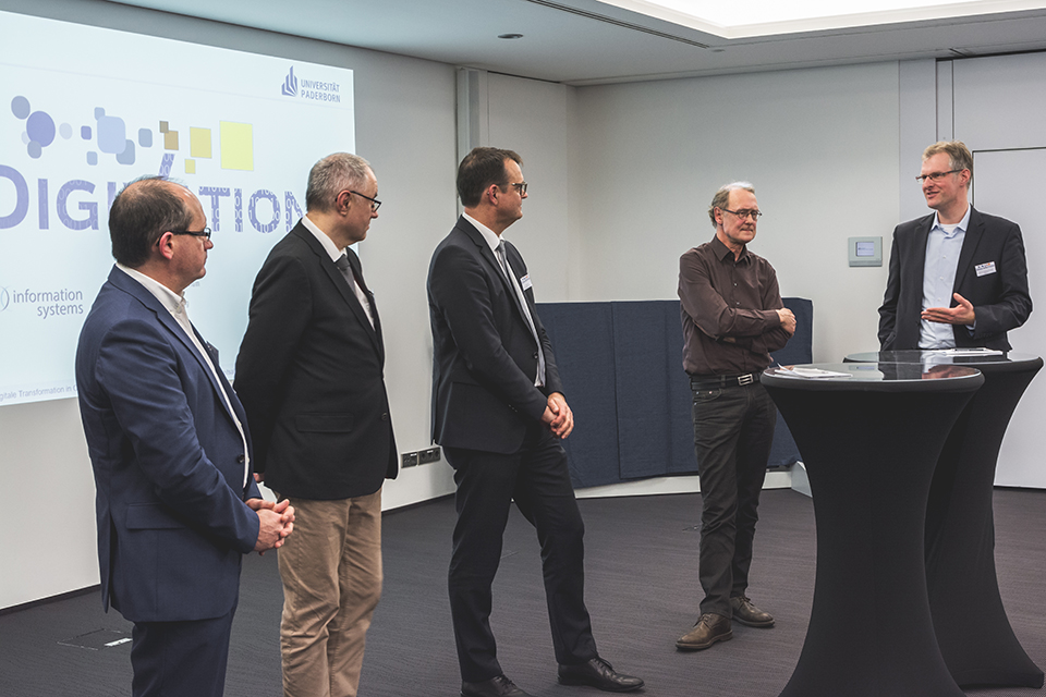 Der Lehrstuhl für Wirtschaftsinformatik, insb. Betriebliche Informationssysteme von Prof. Dr. Daniel Beverungen hat am 22. Februar im Forum der VerbundVolksbank Ostwestfalen-Lippe eine Podiumsdiskussion zum Thema „Digitale Transformation in Organisationen – Chancen und Herausforderungen im Arbeitsalltag” ausgerichtet. Die Veranstaltung wurde im Rahmen des Verbundprojektes „DIGIVATION – Digitale Prozessinnovationen durch datenbasierte Dienstleistungen“, das vom Bundesministerium für Bildung und Forschung (Förderkennzeichen 02K14A220) gefördert wird, durchgeführt.
