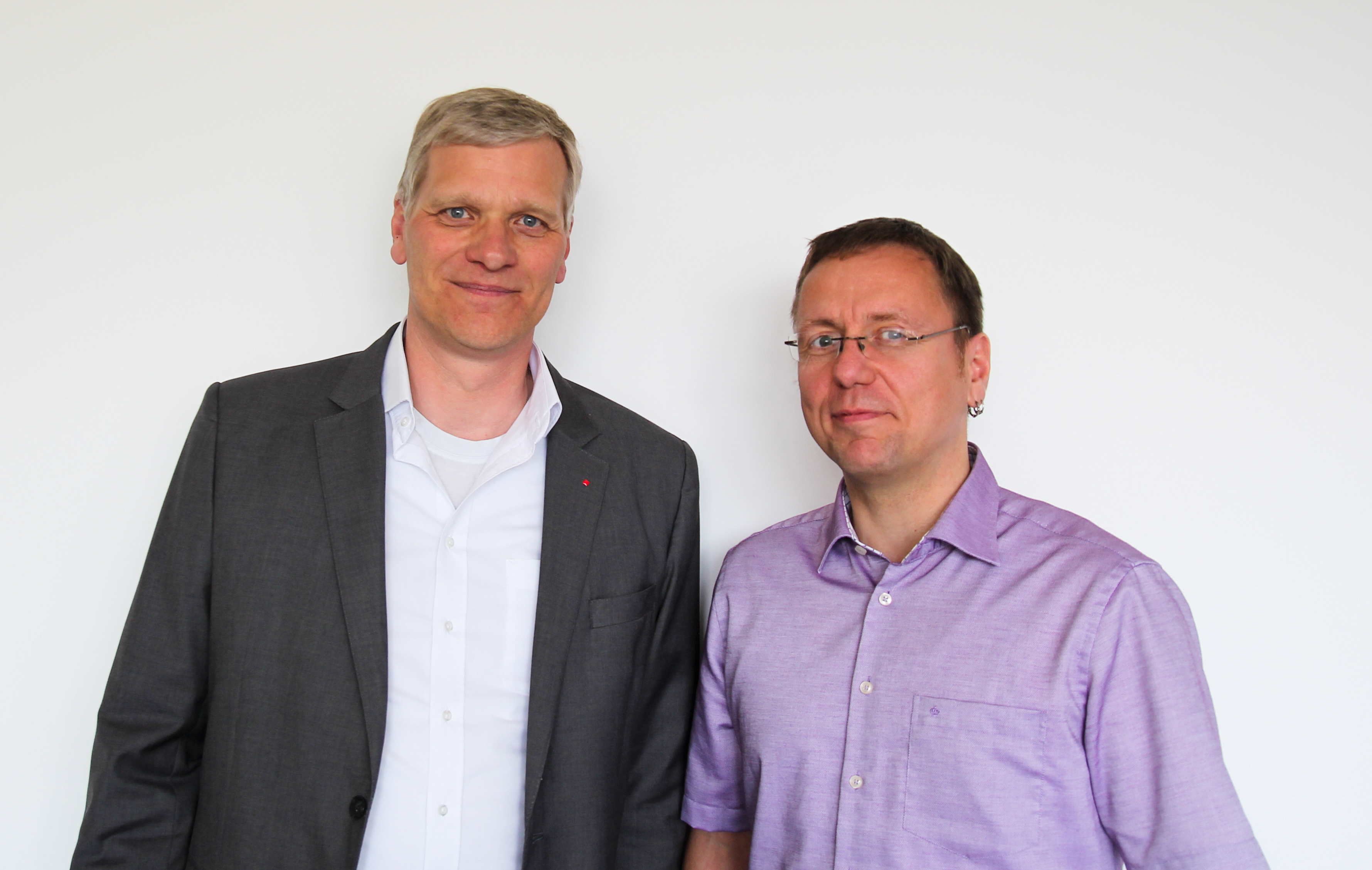 Foto (Universität Paderborn, Kamil Glabica): Prof. Dr. -Ing. Volker Schöppner (links) und Lutz Heidemann.