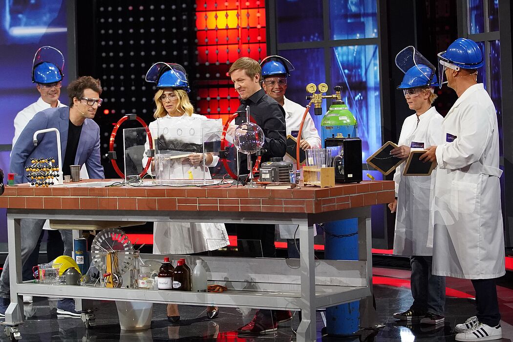Mit zwei neuen Folgen des RTL-Showformats wurde die Kooperation nun fortgesetzt. Zusammen mit dem Redaktionsteam von Günther Jauchs Produktionsfirma i&u starteten bereits im Sommer 2017 die ersten Überlegungen für mögliche Experimente in der Schulstunde „Naturwissenschaften". „Im Vergleich zur ersten Folge hatten wir eine nochmal deutlich größere Aufgabe vor uns – für jede Sendung wurden diesmal fünf Experimente geplant, getestet und bis zur Zufriedenheit aller Beteiligten optimiert“, erzählt Studentin Sophia Thies, die von Seiten der Event-Physik für die Planung und Absprachen mit i&u verantwortlich war.