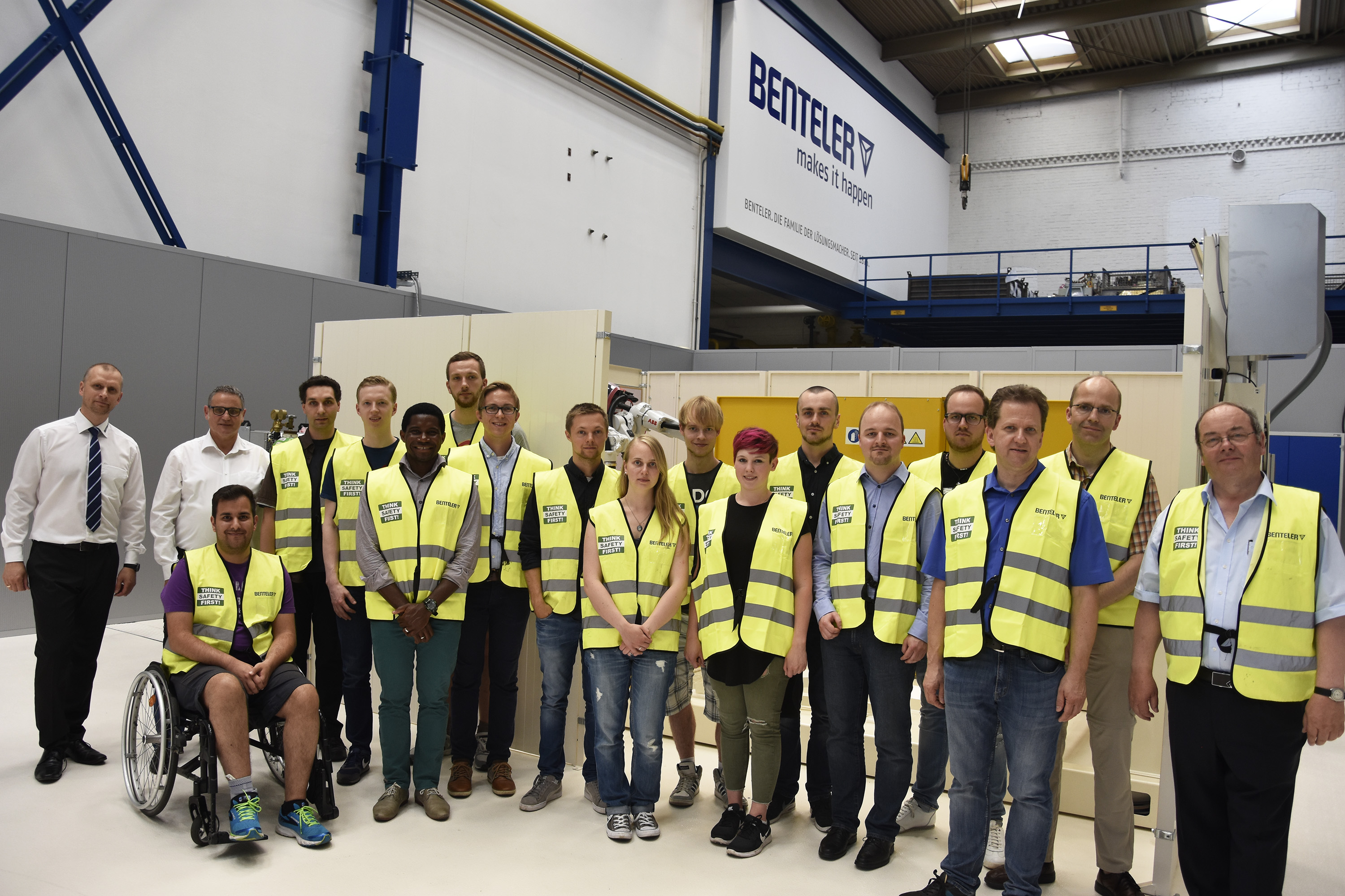 15 Teilnehmer aus den Fachgebieten Ingenieur- und Wirtschaftswissenschaften folgten den Ausführungen zu unterschiedlichen Themenschwerpunkten, darunter „Verantwortung im Arbeitsschutz“, „Maschinensicherheit aus Entwicklungs- und Konstruktionssicht“ sowie „Arbeitssicherheit aus Produktions- und Organisationssicht“. Um den Studierenden und Berufseinsteigern die Bedeutung von Arbeitsschutz zu verdeutlichen, besuchte die Gruppe im Anschluss an die Vorträge die Produktionshallen. „Das Seminarangebot ing.meet.safety ist für Studierende und Absolventen gedacht, die ihr Wissen erweitern und ihre Chancen am Arbeitsmarkt erhöhen und gleichzeitig Verantwortung und Vorbildfunktion übernehmen wollen“, so Prof. Dr.-Ing. Ralf Hörstmeier, der das interdisziplinäre Projekt initiiert und mit Industriepartnern wie Benteler entwickelt hat.
