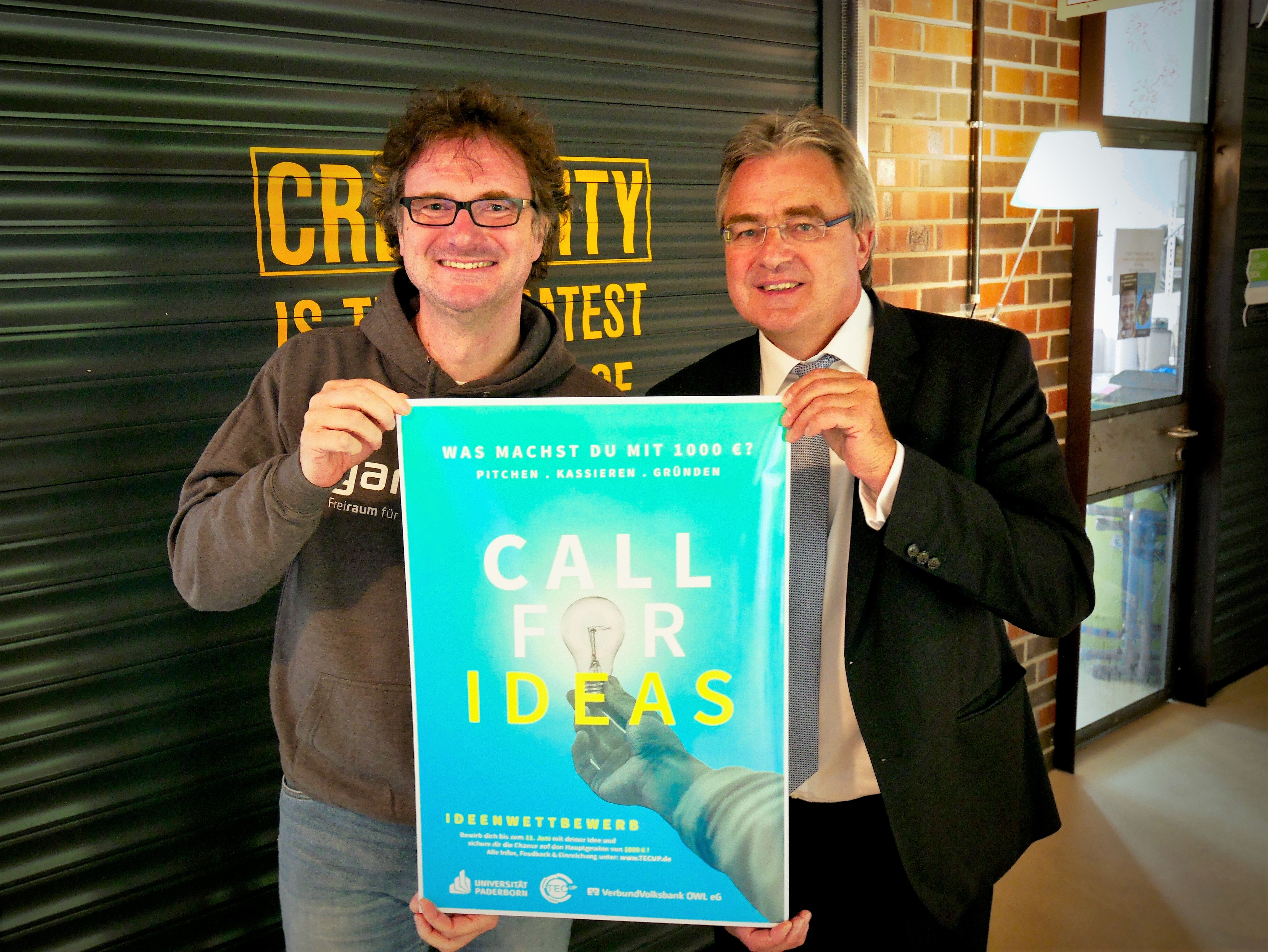 Bewertet wird in den Kategorien „Businessidee“ und „Soziale Idee“, wobei auch letztere auf ihre Tragfähigkeit hin geprüft wird. Neben der Chance auf Preisgelder in Höhe von insgesamt 3.000 Euro bietet sich den Finalisten die Möglichkeit, ihre jeweilige Businessidee als Gründer mit Unterstützung von TecUP und VerbundVolksbank OWL eG in die Tat umzusetzen. „Förderung und Begleitung junger Unternehmen auch durch Zusammenführung von Startups und etablierten Unternehmen ist Kernaufgabe einer mittelständischen regionalen Bank. Der „Call for Ideas“ ist dafür ein hervorragendes Forum“, betont Karl-Heinz-Rawert, Vorstandsmitglied der Verbund-Volksbank OWL eG.