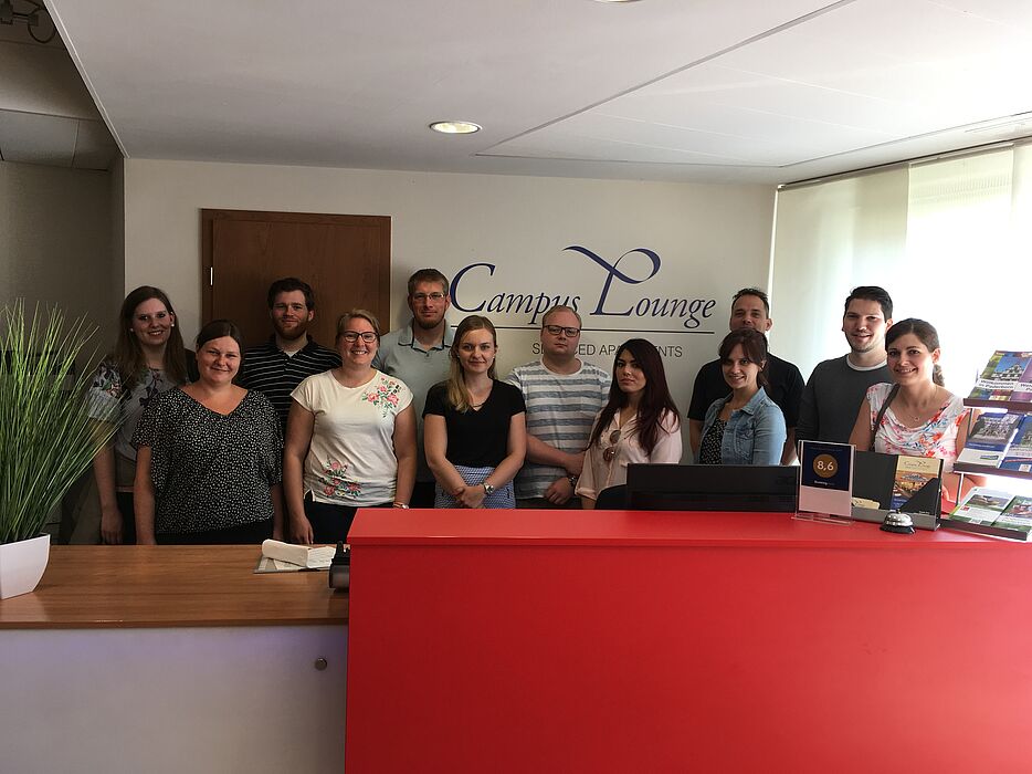 Stefan Laskowski, Manager der Campus Lounge, ermöglichte den Einblick in das Apartment-Hotel und stand den Studierenden für alle Abläufe im Hotel sowie für den Bereich des Gebäudemanagements Rede und Antwort. Von dem 24 h-Self-Check-In, über den Frühstücksraum, der Rezeption, bis hin zu dem Seminar- und Tagungsraum im Wintergarten und den Apartments mit jeweils eigener Kitchenette, konnten die Studierenden sich ein eigenes Bild über die Komplexität der Tätigkeiten verschaffen. Die Exkursion war eine willkommene Abwechslung zum Unialltag und bot durch den engen Austausch lehrreiche Anregungen für den späteren Beruf der angehenden Lehrkräfte.