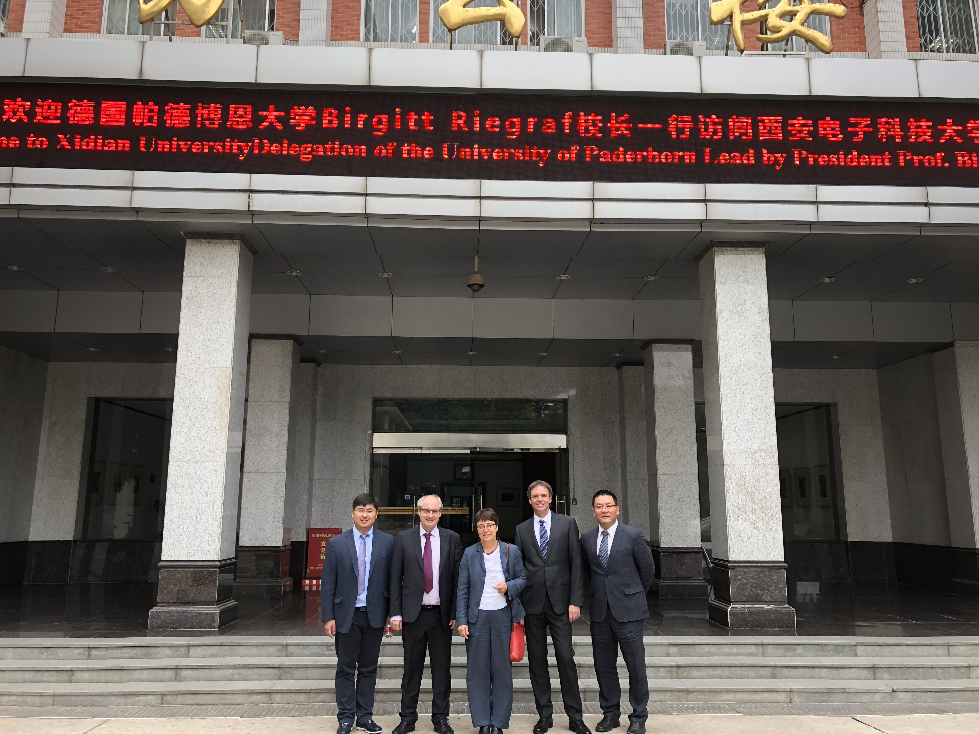 Während einer Chinareise hat sich Ende September eine Delegation der Universität Paderborn, bestehend aus der Präsidentin Prof. Dr. Birgitt Riegraf, dem Vizepräsidenten für Internationale Beziehungen Prof. Dr. Torsten Meier und Prof. Dr. Wolfgang Bremser, dem Deutschen Direktor und Geschäftsführer des Konfuzius Instituts Paderborn, mit Vertretern von HANBAN in Peking und der Partneruniversität Xidian in Xi’an getroffen. An den Gesprächen nahmen auch Prof. Mao Tie, Chinesischer Direktor des Konfuzius Instituts Paderborn, und Junwei Zhong, Geschäftsführer des Internationalen Studienkollegs Paderborn, teil. Der Aufbau und die bisherigen Aktivitäten des Instituts wurden positiv beurteilt sowie vielfältige Perspektiven für die weitere Entwicklung und den Ausbau der Angebote diskutiert. Alle Beteiligten waren sich einig, dass die erfolgreiche Arbeit fortgesetzt und intensiviert werden solle. Insbesondere werde sich das Konfuzius Institut Paderborn verstärkt als Ansprechpartner für die gesamte Region positionieren. Zudem haben die Partneruniversitäten Paderborn und Xidian vereinbart, neben dem gemeinsam gegründeten Konfuzius-Institut, die Kooperationen in den Bereichen Forschung und Lehre zukünftig zu intensivieren. „Die Gespräche stellen eine sehr gute Basis für die erfolgreiche Weiterentwicklung der begonnenen Kooperationen dar“, waren sich die Beteiligten einig.