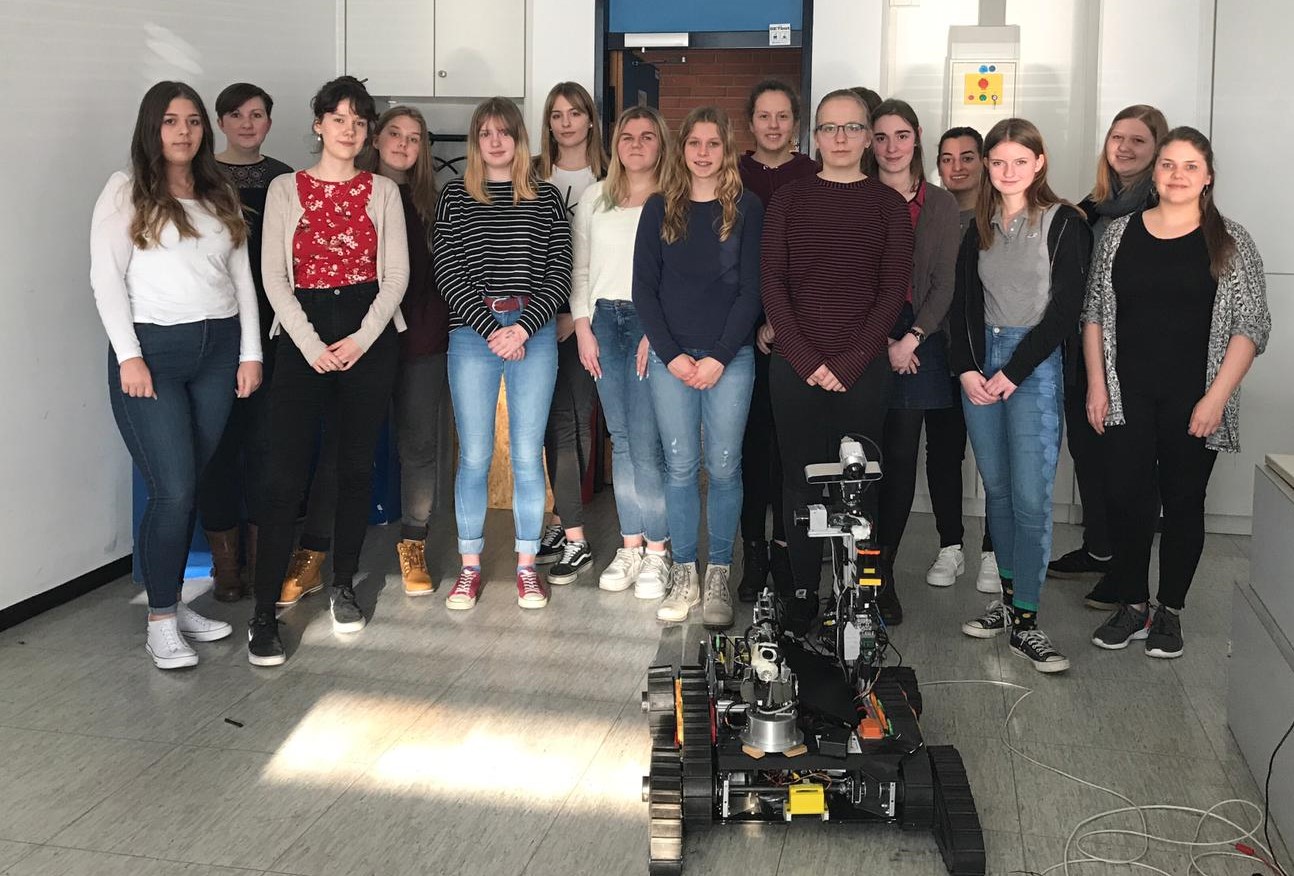 Am Montag, 18. Februar, haben Schülerinnen das MINT-Mentoring-Programm „look upb“ an der Universität Paderborn erfolgreich abgeschlossen und ihre Zertifikate erhalten. Das Programm bietet naturwissenschaftlich und technisch interessierten Schülerinnen der gymnasialen Oberstufe einen praxisnahen Einblick in die Studiengänge Mathematik, Informatik, Naturwissenschaften und Technik (MINT) der Universität Paderborn. Der mittlerweile fünfte Durchgang von „look upb“, der im Oktober vergangenen Jahres startete, schloss nun mit einem MINT-Workshop über das Programmieren von Robotern ab. In Kooperation mit dem GET Lab der Universität bekamen die Schülerinnen die Möglichkeit, selbstständig einen Roboter zu programmieren und einen der Rettungsroboter selbst zu steuern.