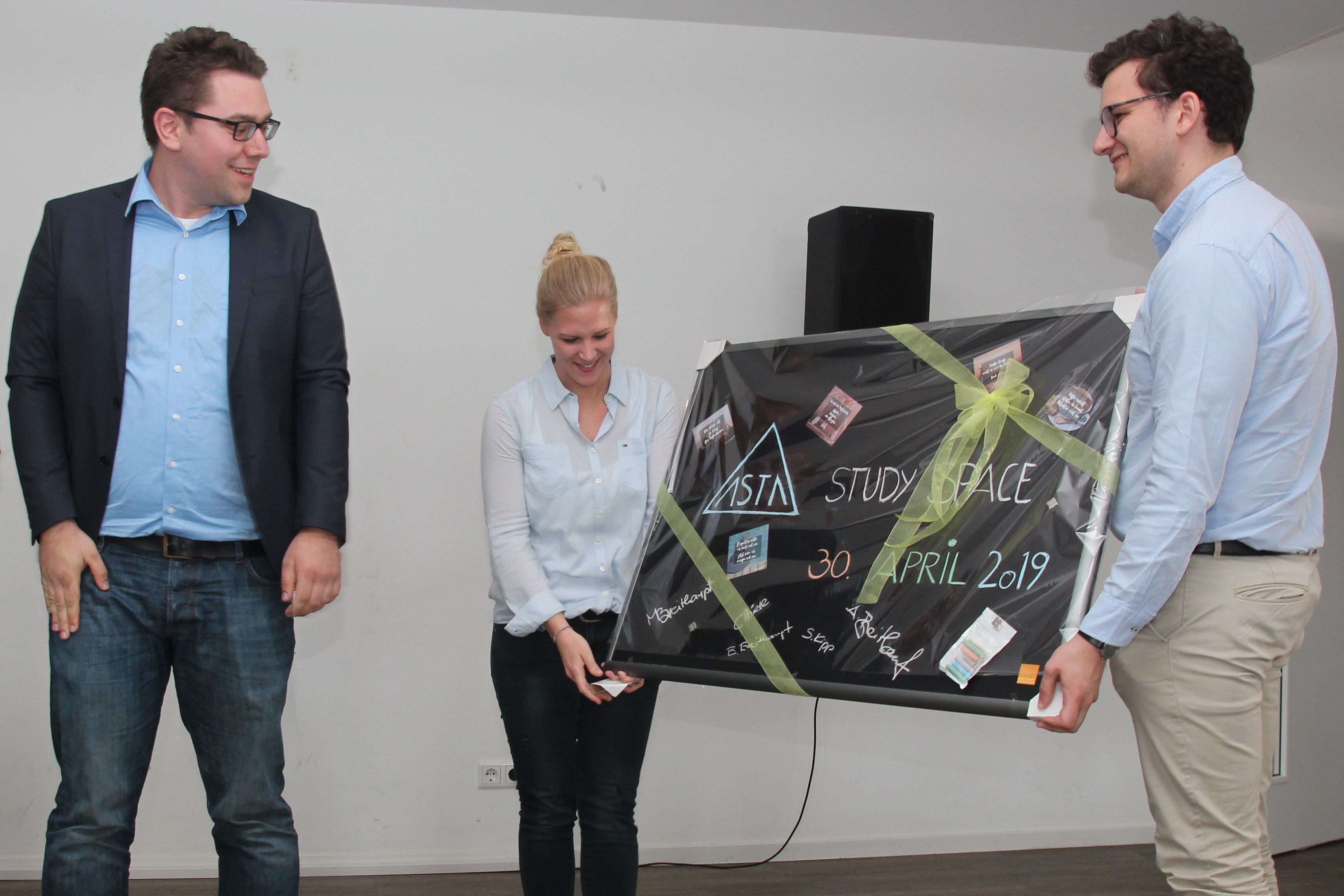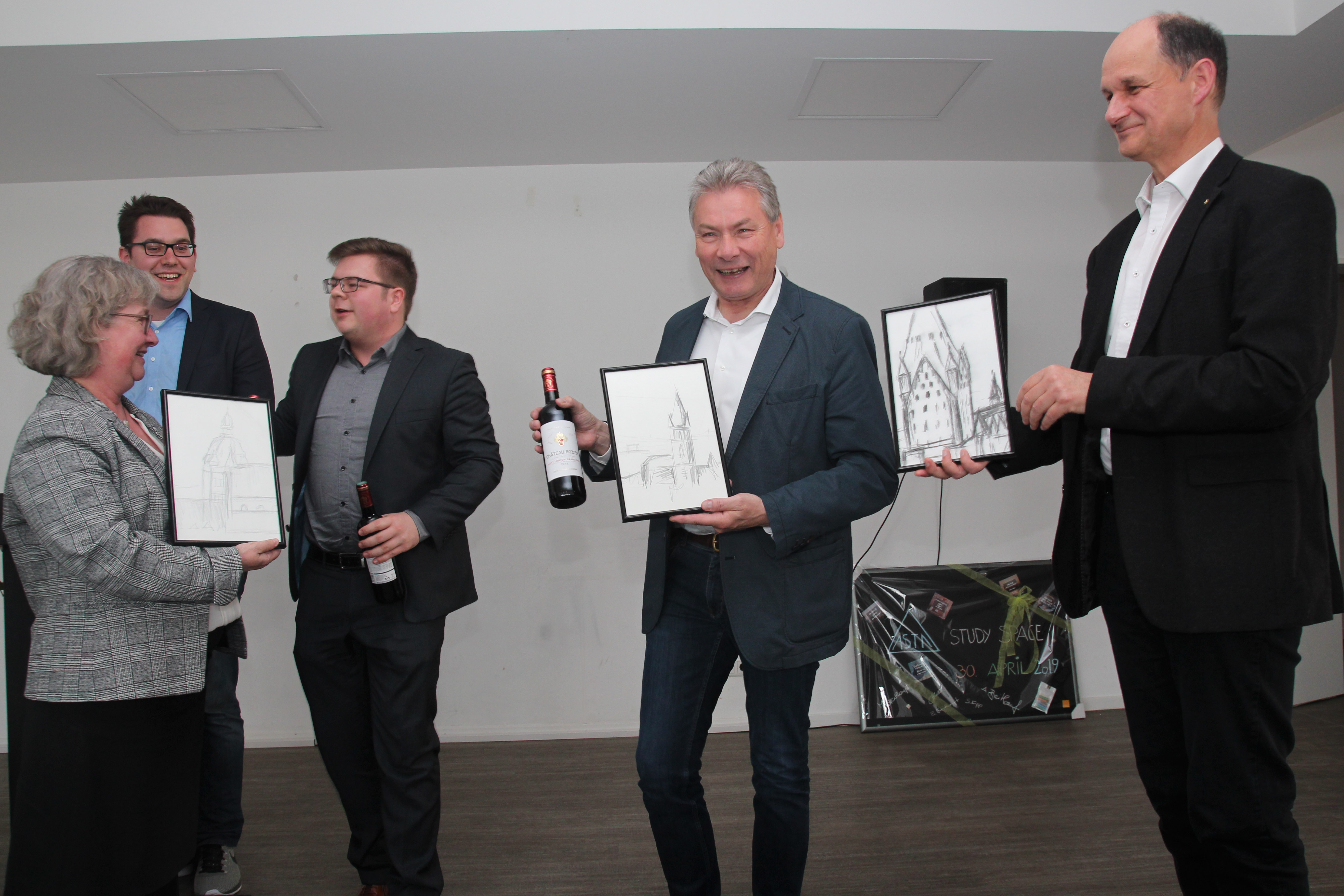 Nikolai Rodehutskors, AStA-Vorsitzender, eröffnete die Feier mit einer Rede, in der er sich bei allen Beteiligten bedankte und sich zufrieden vom Endergebnis zeigte. Die Erweiterung des AStA Stadtcampus im fünften Obergeschoss sei ein wichtiger Schritt, betonte Simone Probst, Vizepräsidentin für Wirtschafts- und Personalverwaltung, insbesondere im Hinblick auf den Erfolg, den bereits die Veranstaltungsfläche im sechsten Obergeschoss des AStA Stadtcampus mit sich brachte. Ferdinand Klingenthal, Leitung Textilhäuser F. Klingenthal GmbH, freute sich über die allgemeine Quartiersentwicklung und über die neu entstandene Lern- und Schreibfläche als weitere Anlaufstelle für Studierende in der Innenstadt ganz besonders. Dem schloss sich der stellvertretende Bürgermeister Paderborns, Dietrich Honervogt, an und hob hervor, dass dies eine sehr positive Entwicklung für alle Seiten sei. Während der Feierlichkeiten erinnerte sich der leitende Architekt des Projektes, Andreas Breithaupt an den Bauprozess zurück und wies auf die besonderen Eigenschaften der Fläche, wie die bemalbaren Glaswände zum Brainstormen und Ideensammeln hin. Matthias de Jong, Projektleiter und zuständiger Referent, hob speziell die von Vertrauen und Zusammenhalt geprägte Zusammenarbeit von Universität, Stadt, Familie Klingenthal und AStA hervor und bedankte sich vielmals. Er hält fest, dass das Projekt sichtlich gewachsen ist und blickt positiv auf eine zukünftige Zusammenarbeit. Im Anschluss fand eine Besichtigung der neuen Fläche statt.