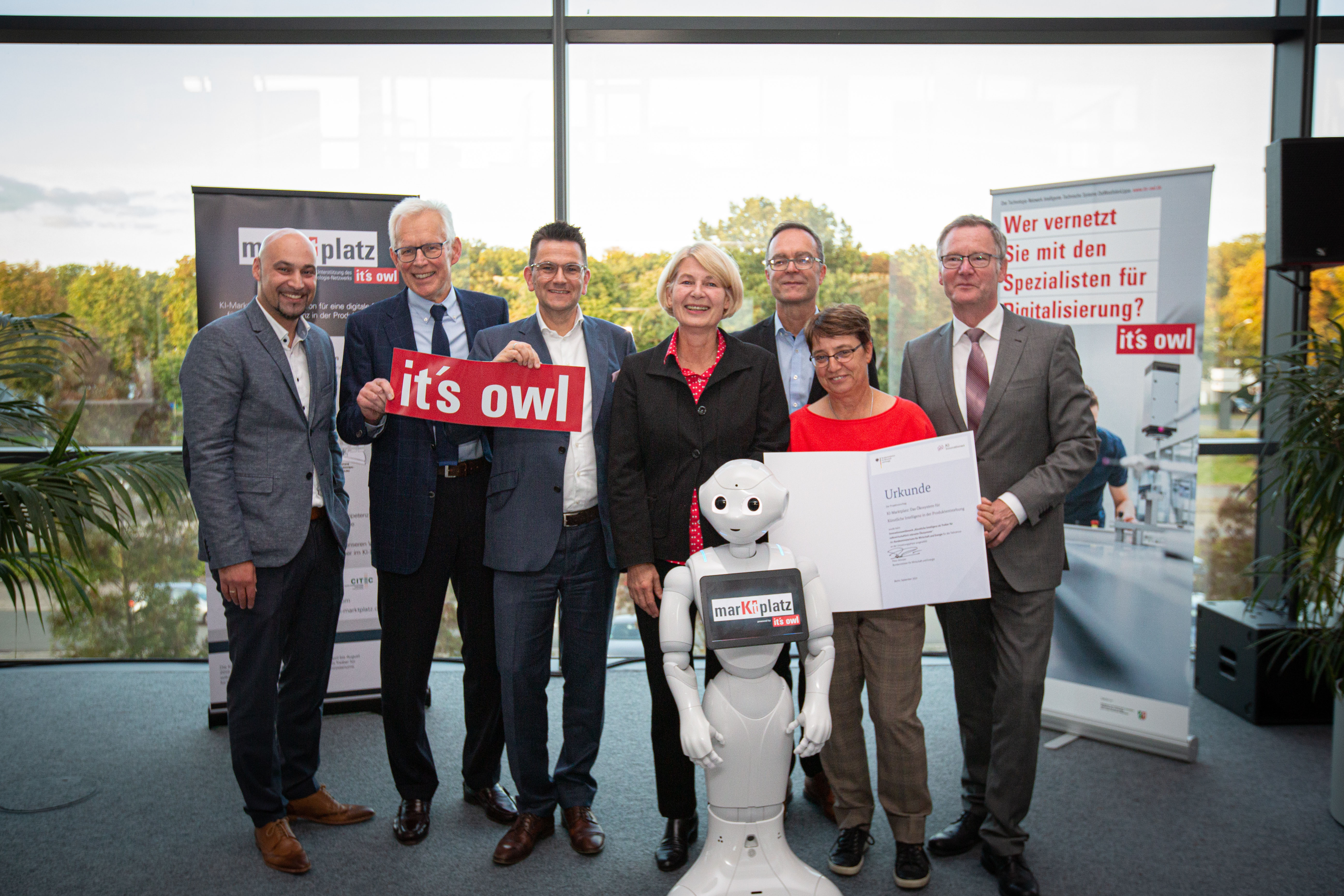 Das Konzept wurde unter der Federführung des Heinz Nixdorf Instituts der Universität Paderborn und des Fraunhofer-Instituts für Entwurfstechnik Mechatronik IEM entwickelt. Prof. Dr. Roman Dumitrescu (Vorstand Heinz Nixdorf Institut, Direktor Fraunhofer IEM und Geschäftsführer it´s OWL) erläutert: „Die Auszeichnung ist ein großartiger Erfolg und zeigt, dass die Forschungseinrichtungen und Unternehmen aus dem Spitzencluster it´s OWL wichtige Treiber für Künstliche Intelligenz im Mittelstand sind. Mit dem KI-Marktplatz werden wir ein bundesweit einzigartiges Angebot schaffen, mit dem gerade kleine und mittlere Unternehmen die Potenziale von Künstlicher Intelligenz in der Produktentstehung erschließen können. Besonders freue ich mich, dass wir starke Paderborner Partner aus Forschung und Industrie an Bord haben.“ Ähnlich sieht das auch Prof. Dr. Birgitt Riegraf, Präsidentin der Universität Paderborn: „Die Förderung bekräftigt uns in unserer Forschungsstrategie und ist ein großartiger Erfolg für die gesamte Region, deren ökonomisches Wachstum durch die vorbildhafte und weithin sichtbare Kombination von Spitzenforschung und Wirtschaft geprägt ist.“