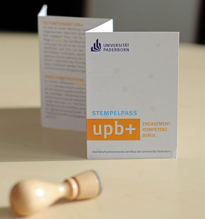 Neben den Teilnahmebescheinigungen können die Studierenden ihre Zusatzleistungen auch mit Einträgen im „upb+ Stempelpass“ dokumentieren. Den Stempelpass gibt’s in den Sprechstunden von Simone Rudolph Brandão und Josephine Sames (Kontaktdaten siehe unten).