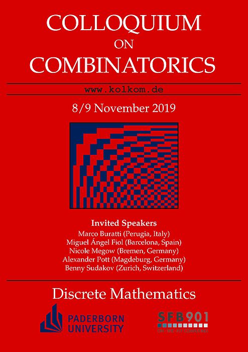 Das Kolloquium über Kombinatorik, das zum 4. Mal in Folge an der Universität Paderborn stattfindet, hat sich zu einer international sichtbaren und etablierten Tagung entwickelt, die inhaltlich das Gebiet der Kombinatorik umfassend von der Algebra bis hin zur theoretischen Informatik abdeckt. Weitere Informationen finden sich unter www.kolkom.de.