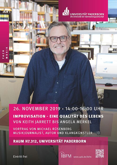 Am Dienstag, 26. November, ist der Musikjournalist, Autor und Klangkünstler Michael Rüsenberg zu Gast am Institut für Begabungsforschung in der Musik (IBFM). In einem multimedialen Vortrag zum Thema „Improvisation – Eine Qualität des Lebens von Keith Jarrett bis Angela Merkel“ wird er die Hörer*innen dort abholen, wo sie die Improvisation „zu Hause“ meinen – im Jazz. Ausgehend davon wird er mit einer Betrachtung der Improvisation als anthropologische Konstante des Menschen den Fokus weit aufziehen.