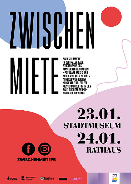Studierende des Masterstudiengangs „Populäre Musik und Medien“ der Universität Paderborn laden am 23. und 24. Januar im Rahmen der Veranstaltungsreihe „Zwischenmiete“ zu Konzerten in außergewöhnlicher Atmosphäre ein. Am Donnerstag, 23. Januar, treten Loki, Songwriter und Produzent, und die Band Hopo Pongo im Stadtmuseum Paderborn auf. Das Publikum erwartet ein Abend mit lyrischen Anekdoten und popkulturellen Referenzen aus Lokis Album „The Tales Of Antheon The Rabbit“ und genreübergreifenden Klängen von Hopo Pongo, die von Indie-Pop und Disco über Jazz bis hin zu Post-Rock reichen. Am darauffolgenden Tag öffnet das Paderborner Rathaus für die Veranstaltungsreihe seine Tore, wo die beiden Bands „Alter Kaffee“ und „Die Lieferanten“ mit ironische Texten, verspielten Arrangements und energiegeladenen Bühnenauftritten zu einem humorvollen Abend einladen. Die Konzerte beginnen um 19.30 Uhr. Einlass ist jeweils um 19 Uhr. Tickets gibt es kostenlos im Internet auf www.eventbrite.de.