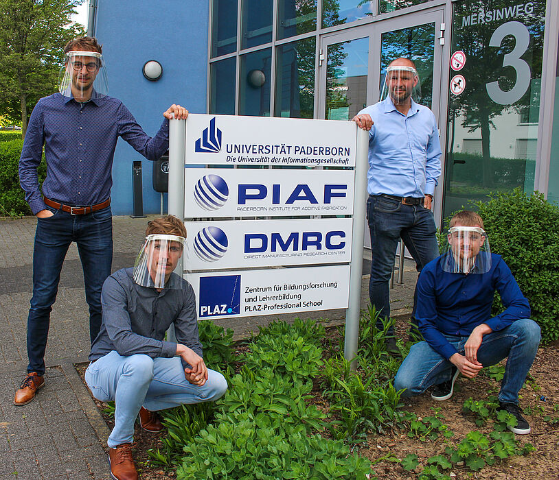 Additive Fertigungsverfahren, auch 3D-Duck genannt, stoßen in Wissenschaft und Industrie auf ein zunehmendes Interesse. An der Universität Paderborn gibt es mit dem „Direct Manufacturing Research Center“ (DMRC) eine Forschungseinrichtung, die das Ziel verfolgt, genau diese Verfahren zu industrialisieren. Zusammen mit der Condor MedTec GmbH, Mediziner*innen und Fachpfleger*innen für Anästhesie und Intensivmedizin haben vier Wissenschaftler des DMRC ein Kernteam gebildet, um mithilfe von additiven Fertigungsverfahren die Region mit industriell hergestellten Gesichtsschildern zu versorgen. Das für die Produktion notwendige Pulver spendeten die Eos GmbH und die Evonik Industries AG. Dr.-Ing. Christian-Friedrich Lindemann, Geschäftsführer des DMRC und Koordinator der vierköpfigen Forschergruppe, freut sich über das Ergebnis: „Das aktuelle Beispiel zeigt wunderbar, dass die Additive Fertigung kurzfristig lokalen Ersatz für sonst global aufgestellte Lieferketten leisten kann. Aufgrund der vielen Vorteile der Technologie, ist 3D-Druck inzwischen ein fester Bestandteil in der Landschaft der industriellen Produktion geworden.“