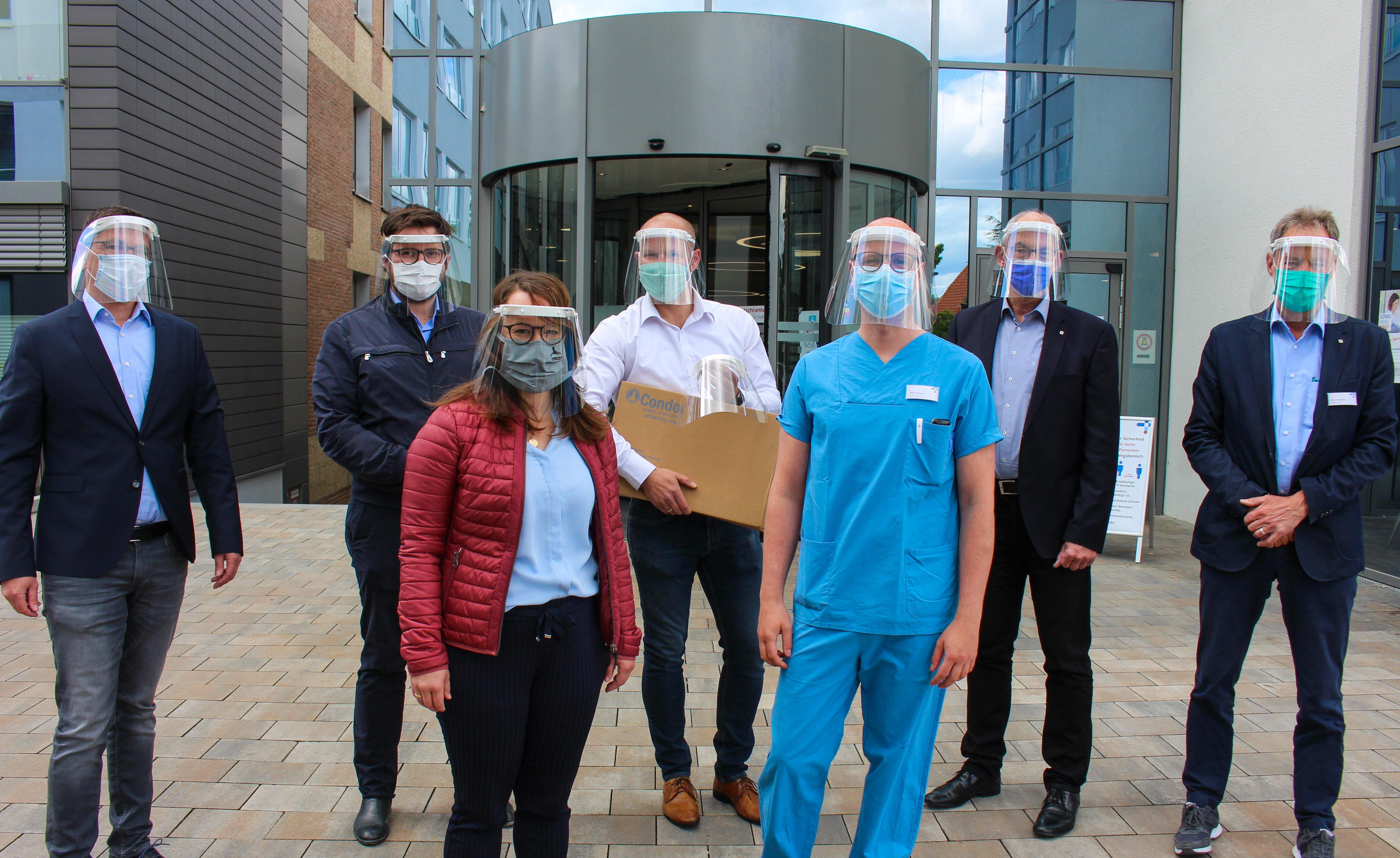 Seit dem 27. April gilt in Deutschland die Maskenpflicht. Während für den privaten Gebrauch auch selbstgebastelte Gesichtsbedeckungen zulässig sind, müssen Masken im Gesundheitswesen dagegen strengere Mindestanforderungen erfüllen. Damit es also gerade dort, wo sie am dringendsten benötigt werden, zu keinen Engpässen kommt, hat ein regionales Projektteam Gesichtsschilder entwickelt und produziert. Daran beteiligt sind Wissenschaftler der Universität Paderborn sowie die Unternehmen Condor MedTec GmbH, Centroplast Engineerings Plastics und LST-Laserschneidtechnik. Insgesamt sollen bis zu 4.500 Stück der sogenannten „Faceschields“ in der Region OWL kostenfrei an Krankenhäuser, Arztpraxen, Pflegeheime und weitere Einrichtungen des Gesundheitswesens ausgeliefert werden. Das Brüderkrankenhaus St. Josef in Paderborn hat seine Lieferung nun erhalten. Interessierte Einrichtungen können sich unter info@dmrc.de für eine Bestellung melden.