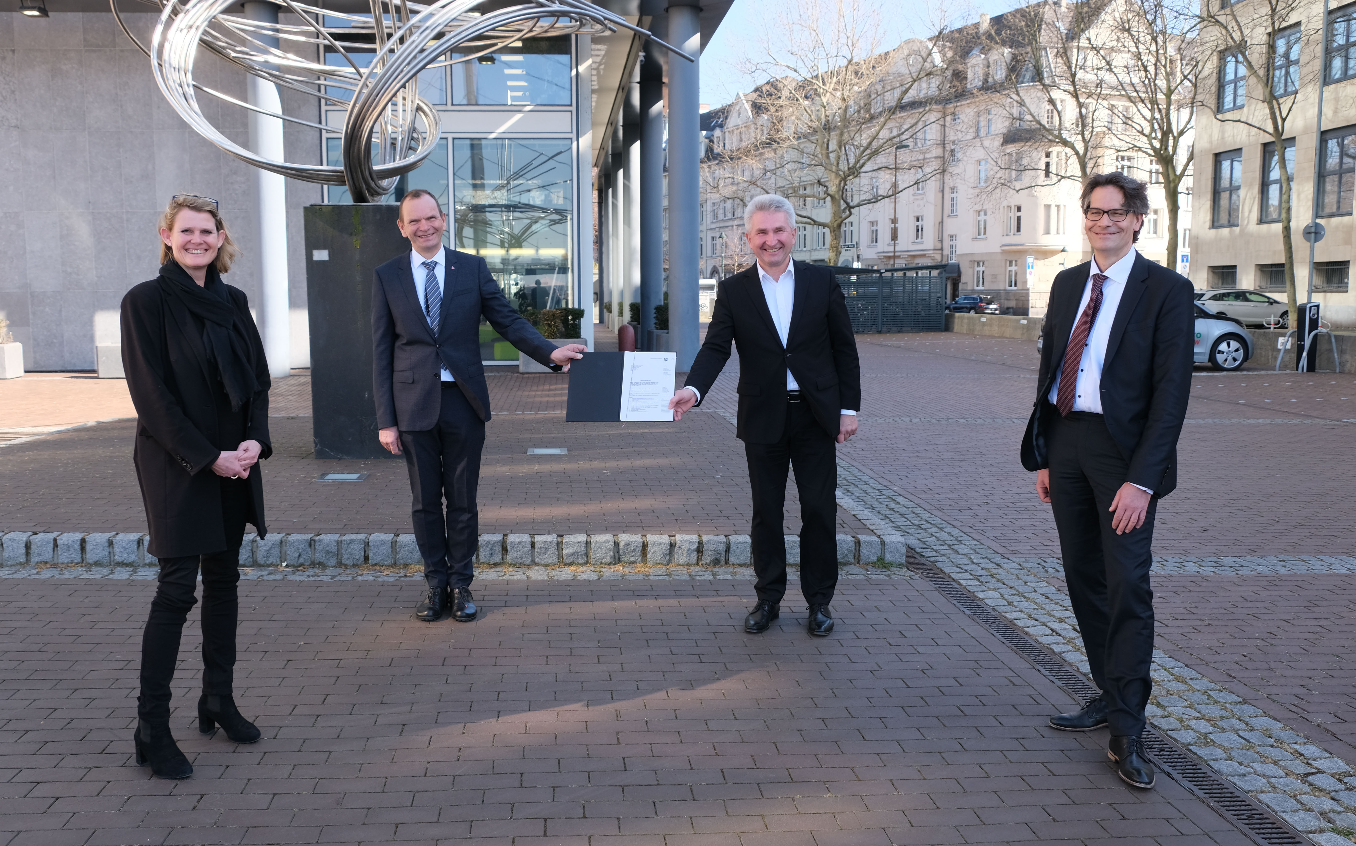 Prof. Dr. Andreas Pinkwart, Minister für Wirtschaft, Innovation, Digitalisierung und Energie des Landes Nordrhein-Westfalen (MWIDE), hat am Montag in Düsseldorf den Förderbescheid für das künftig in Detmold angesiedelte KreativInstitut.OWL übergeben. 10,6 Millionen Euro fließen für dieses Projekt im Rahmen der Regionale 2022. Das KreativInstitut.OWL wurde unter Federführung der Technischen Hochschule Ostwestfalen-Lippe im Verbund mit der Universität Paderborn und der Hochschule für Musik Detmold beantragt.