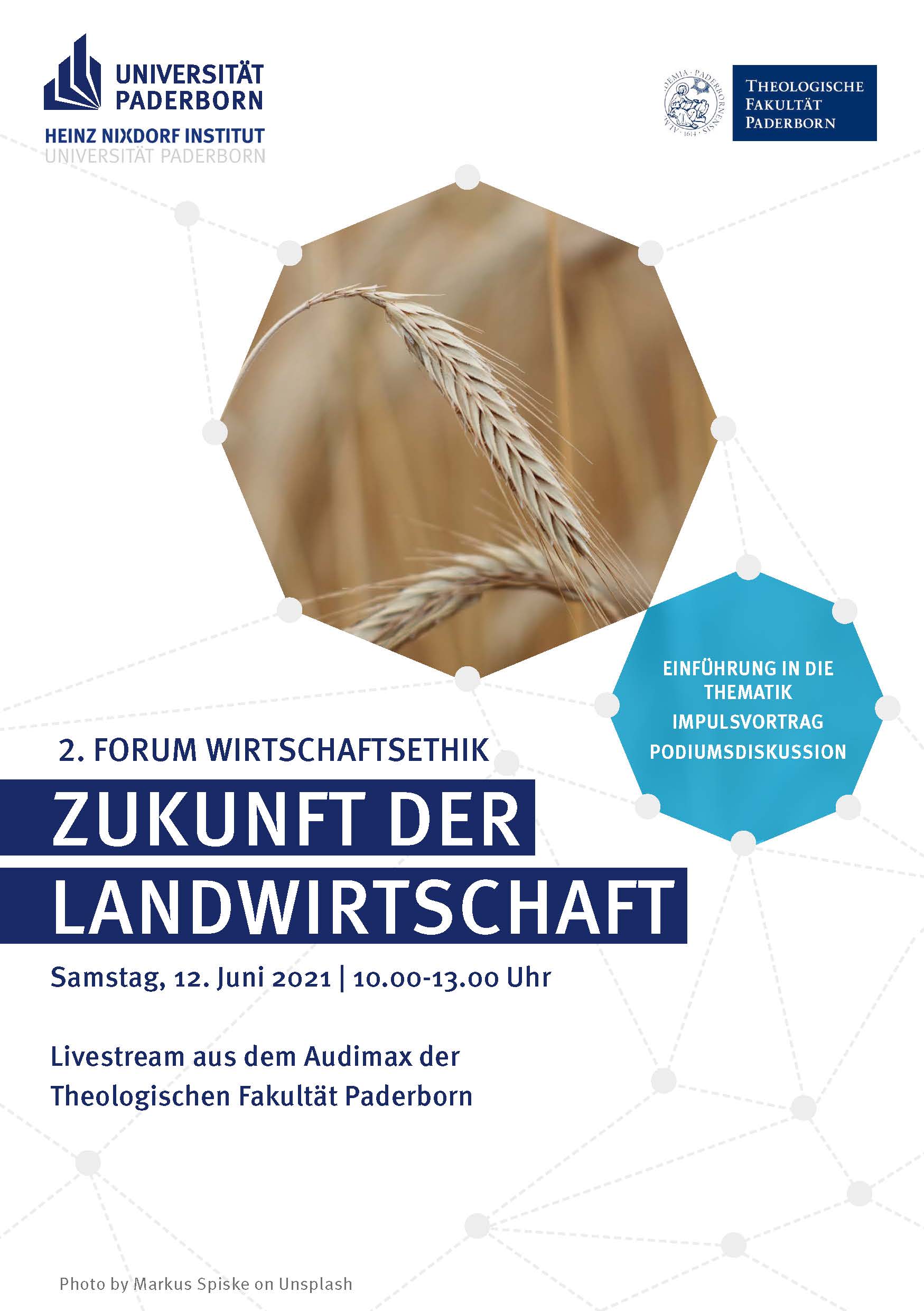 Diese Fragen werden am Samstag, 12. Juni, beim 2. Forum Wirtschaftsethik unter dem Titel „Zukunft der Landwirtschaft“ diskutiert. Verschiedene Expert*innen kommen miteinander ins Gespräch, darunter Ursula Heinen-Esser, Ministerin für Umwelt, Landwirtschaft, Natur- und Verbraucherschutz in Nordrhein-Westfalen, Hubertus Beringmeier, Präsident des Westfälisch-Lippischen Landwirtschaftsverbands, Markus Wolter, Experte für Landwirtschaft und Ernährung beim Bischöflichen Hilfswerk Misereor, Georg Janßen, Bundesgeschäftsführer der Arbeitsgemeinschaft bäuerliche Landwirtschaft, und Prof. (em.) Dr. Dr. h.c. Alois Heißenhuber von der Technischen Universität München-Weihenstephan. Heißenhuber wird zuvor einen Impulsvortrag – Gesellschaftsvertrag für eine klima-, natur- und tierwohlgerechte bäuerliche Landwirtschaft – halten. Moderiert wird das Forum von der bekannten Journalistin Brigitte Büscher.