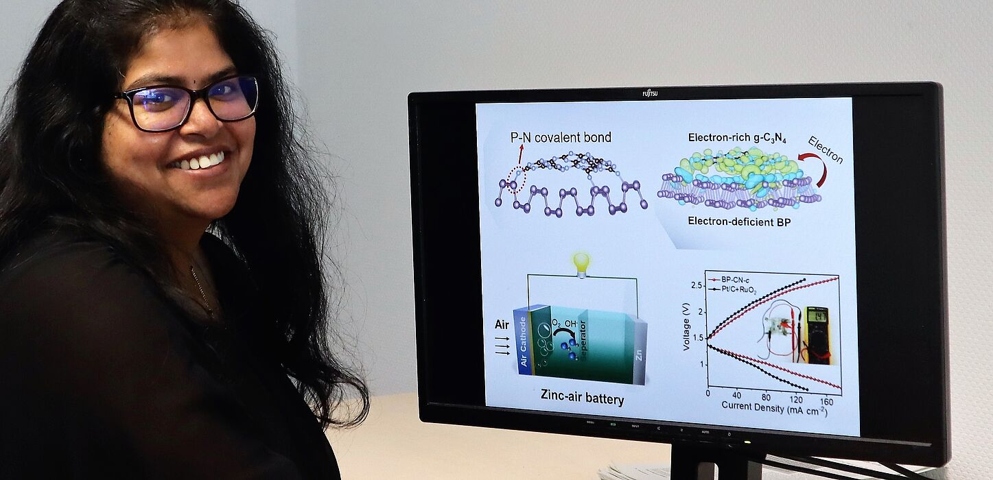 Die Wissenschaftler*innen haben durch kovalente Bindung – also die atomare Bindung zwischen Nichtmetallen – von Phosphor mit graphitischem Kohlenstoffnitrid den ersten metallfreien bifunktionalen Sauerstoff-Elektrokatalysator entwickelt. Dazu Kormath Madam Raghupathy: „Die hohe Sauerstoff-Evolutionsreaktion übertrifft alle bisherigen metallfreien Katalysatoren auf Phosphor-Basis. Wir konnten mithilfe von experimentellen Studien und Berechnungen die entscheidende Rolle der Grenzflächen-Bindungen bei der Regulierung der Elektronenumverteilung bestätigen.“ Künftig könnte das Prinzip eine leistungsstarke Strategie für die Herstellung von Katalysatoren sein, die für verschiedene Energiespeicher- und Umwandlungsanwendungen benötigt werden.