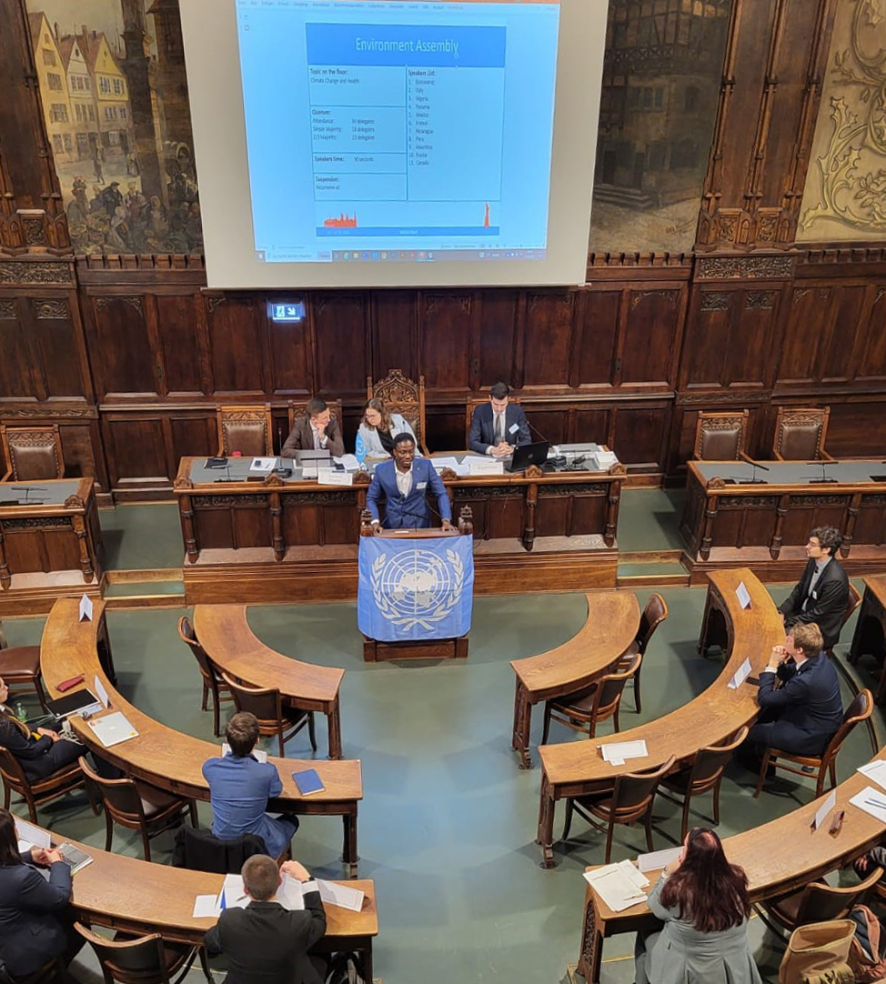 Die international renommierten „Modell United Nations“ (MUN) sind alljährlich durchgeführte Planspiele für Studierende, bei der die Arbeitsweise der Vereinten Nationen simuliert wird. Dadurch erhalten die Teilnehmer*innen einen Einblick in die Arbeit der Vereinten Nationen und entwickeln rhetorisches und diplomatisches Geschick. Zudem werden dabei Sprachkenntnisse trainiert und erweitert, da die gesamte Veranstaltung auf Englisch abgehalten wird.