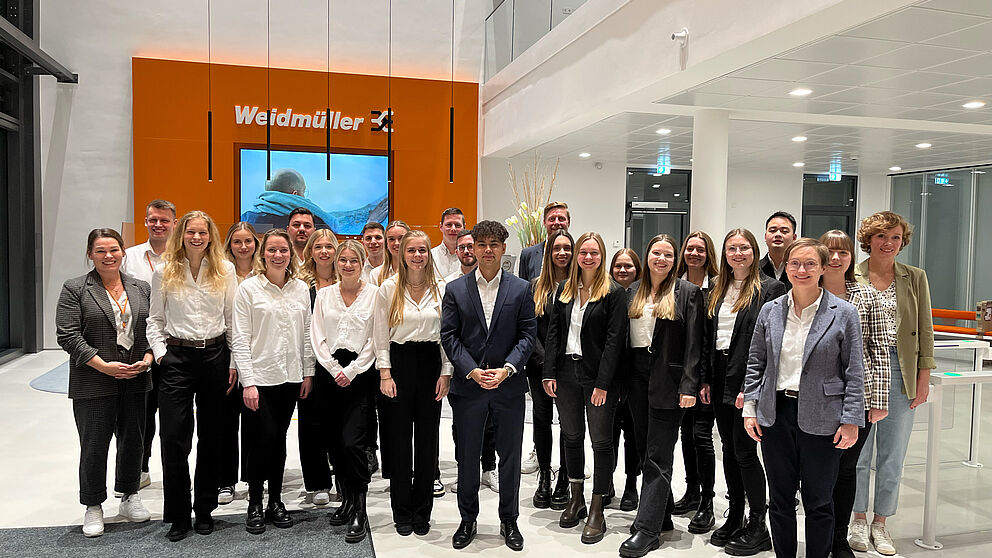 Foto (Universität Paderborn, Weidmüller): Unter der fachlichen Leitung von Prof. Dr. Lena Steinhoff (v. r.) haben Studierende der Universität Paderborn beim Elektronikhersteller Weidmüller im Rahmen des „Capstone Course“ praktische Erfahrungen sammeln dürfen.