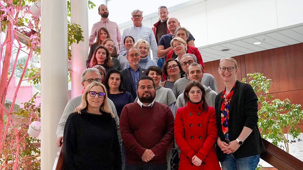 Foto (Universität Paderborn): Prof. Dr. Heike Trautmann (vorne links), Vizepräsidentin für Internationale Beziehungen, freut sich mit weiteren Wissenschaftler*innen und Mitarbeitenden über den Besuch von Dr. Marie-Léa Rousseau (vorne, 2. v. rechts), Attachée für Wissenschaft und Technologie der französischen Botschaft in Berlin.