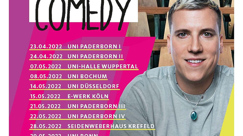 14 Shows und fünf Comedians – das ist die „1LIVE Hörsaal-Comedy“ 2022. Zum elften Mal kommt 1LIVE mit Deutschlands besten Comedy-Newcomer*innen an die Unis im Sektor - auch nach Paderborn.