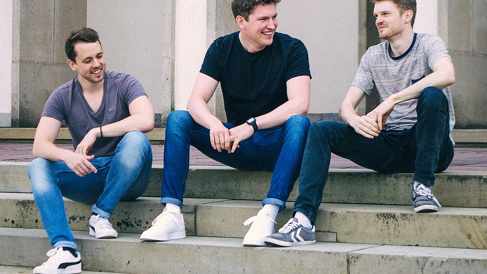 Foto (Fabian Tellenbröker): (v. l.) Die Gründer von mykori, Tim Bröker, Max Metzner und Mo-ritz Hollenbeck.
