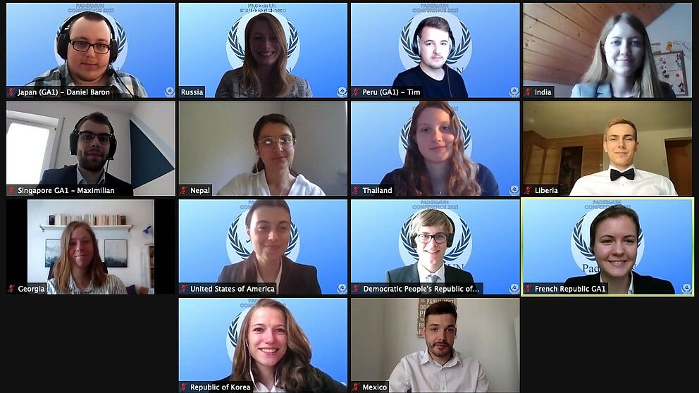 Foto (Kristin Fibich): Studierende simulieren die Generalversammlung der Vereinten Nationen bei der virtuellen „Model United Nations-Konferenz“ der Hochschulgruppe PaderMUN.