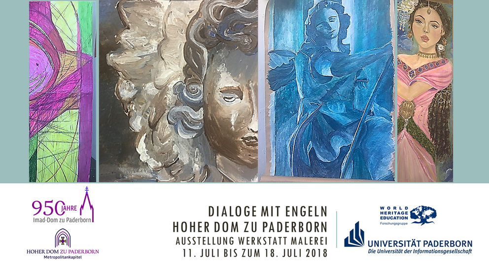 Kunst-Studierende der Universität Paderborn zeigen vom 11. bis zum 18. Juli eigens entwickelte Engeldarstellungen und Bilderbuchseiten bei einer Ausstellung im Hohen Dom zu Paderborn. Anlass ist das 950-jährige Weihejubiläum des Doms.