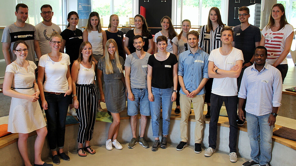 Foto (Universität Paderborn, Ricarda Michels): Die Teilnehmer der Lehrveranstaltung „Social Entrepreneurship“ mit den Seminarleiterinnen Eva Alexandra Schmitz (1. Reihe, 1.v. l.) und Lea Hansjürgen (1. Reihe, 2.v. l.).