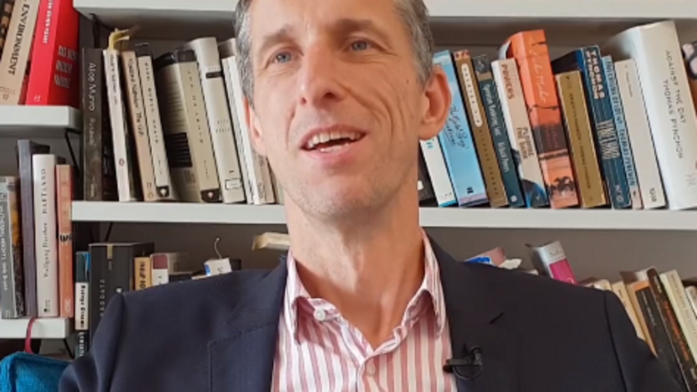 Foto (Universität Paderborn, Simon Ratmann): Die Facebook-Videoreihe zum Thema Lieblingsbuch startete am 10. Oktober mit einem Beitrag von Prof. Dr. Christoph Ribbat vom Institut für Anglistik und Amerikanistik der Fakultät für Kulturwissenschaften.