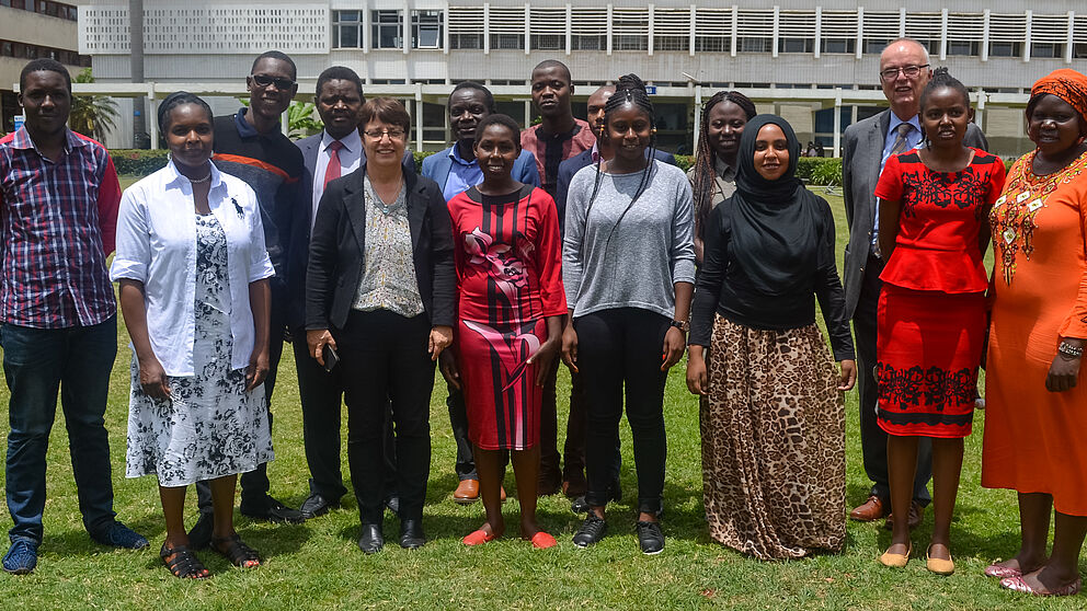 Foto (Universität Paderborn): Prof. Dr. Birgitt Riegraf (Fünfte von Links) mit Vertreterinnen und Vertre-tern der Universität Nairobi und des DAAD.
