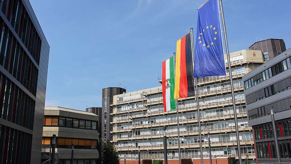 Heute wird deutschlandweit an die Männer und Frauen erinnert, die Widerstand gegen die NS-Diktatur leisteten. Am 20. Juli 1944 verübte eine Gruppe um Claus Schenk Graf von Stauffenberg ein Attentat auf Adolf Hitler – eine von vielen Formen des Widerstands. Anlässlich des Gedenktags wehen am Haupteingang der Universität Paderborn die Flaggen der Bundesrepublik Deutschland, der Europäischen Union und des Landes Nordrhein-Westfalen.