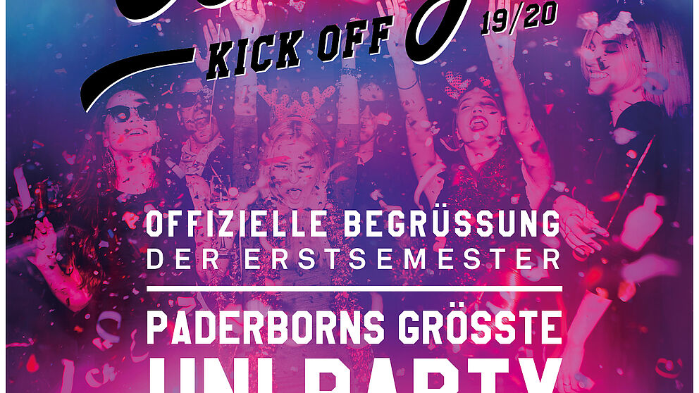 Zum Start des Wintersemesters 2019/20 veranstaltet die Universität Paderborn am Donnerstag, 10. Oktober, erstmals den „College Kickoff“, die offizielle Semestereröffnungsfeier. Über den Campus verteilt legen auf vier Bühnen 12 DJs Musik auf – von Trash, Elektronika und Hip Hop bis hin zu Electronic Dance Music. Los gehts um 22 Uhr. Ende der Veranstaltung ist am Folgetag um 3.30 Uhr.