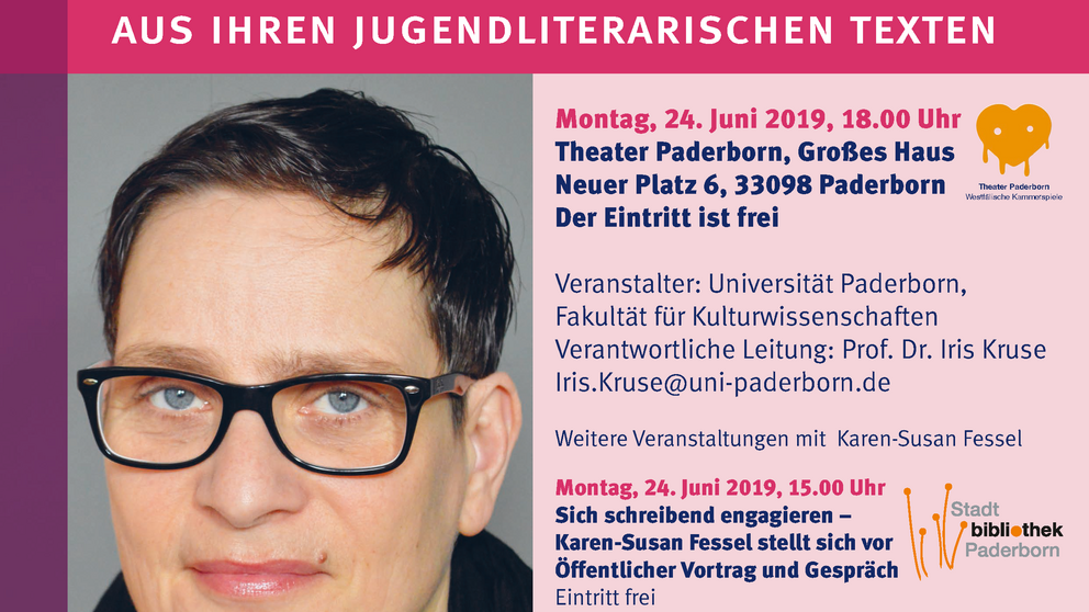 Karen-Susan Fessel, freie Schriftstellerin und Journalistin aus Berlin, ist Gast bei den diesjährigen Paderborner Kinderliteraturtagen, die von Montag, 24. Juni, bis Mittwoch, 26. Juni, an verschiedenen Orten stattfinden werden.