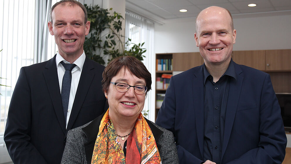 Foto (Universität Paderborn, Nina Reckendorf): Tauschten sich über die regionale Start-up- und Gründer-Szene aus: v. l.: Prof. Dr. Johannes Blömer, Prof. Dr. Birgitt Riegraf und MdB Ralph Brinkhaus.