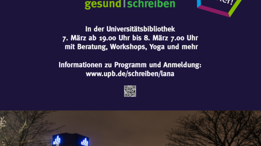 Am Donnerstag, 7. März, ist es wieder soweit: Studierende und Promovierende aller Fakultäten können bei der „Langen Nacht des Schreibens“ in der Uni-Bibliothek zwölf Stunden an Texten feilen und ihrem Schreibprojekt neuen Schwung geben. Dazu werden individuelle Schreibberatungen, Kurzworkshops und Vorträge angeboten. Zur Stärkung und zum Entspannen gibt es ein nächtliches Buffet und Yoga – im Sinne des diesjährigen Mottos „gesund Schreiben“. Für…