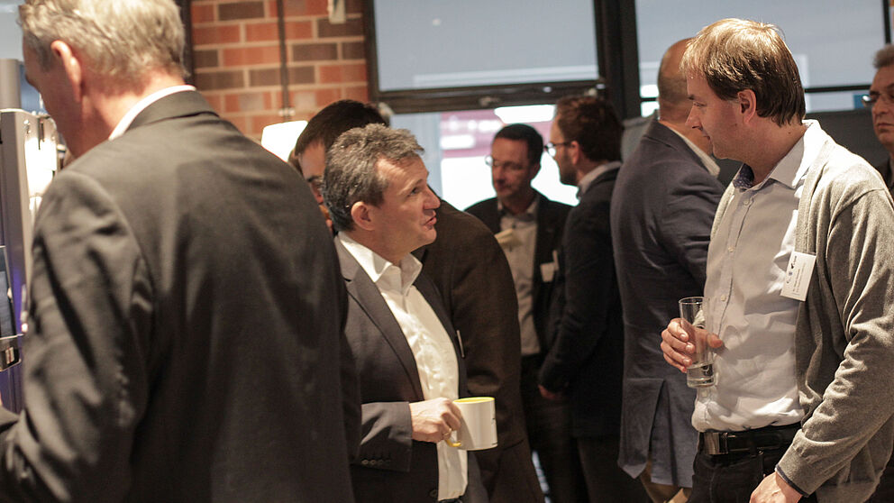 Foto (garage33): Prof. Dr. Thomas Tröster (Zweiter v. l.) während des „Innovationstags Leichtbau für die Mobilität der Zukunft“ im Gespräch mit anderen Experten.
