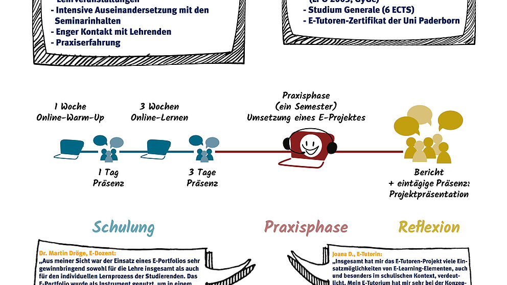 Vorlesungen, Seminare und Übungen, unterstützt durch digitale Medien: Studierende, die sich für das Thema E-Learning, begeistern, können sich ab sofort wieder als E-Tutor ausbilden lassen. Die vorbereitende Schulung findet in der vorlesungsfreien Zeit zwischen Februar und März statt. Im kommenden Sommersemester helfen die ausgebildeten Studierenden dann als E-Tutoren Lehrenden, E-Learning-Methoden in Lehrveranstaltungen einzusetzen.