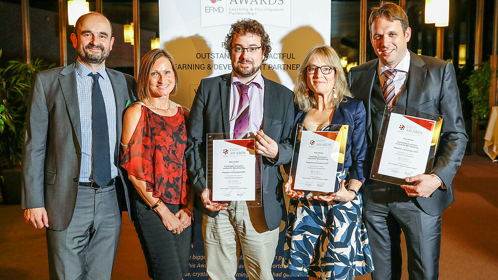 Foto (EFMD): Freuen sich über den zweiten Platz bei der EFMD-Preisverleihung: V. l.: Peter Thornton, Amanda Bamford, Simon Oberthür, Judith Shawcross und Sven Geerts.