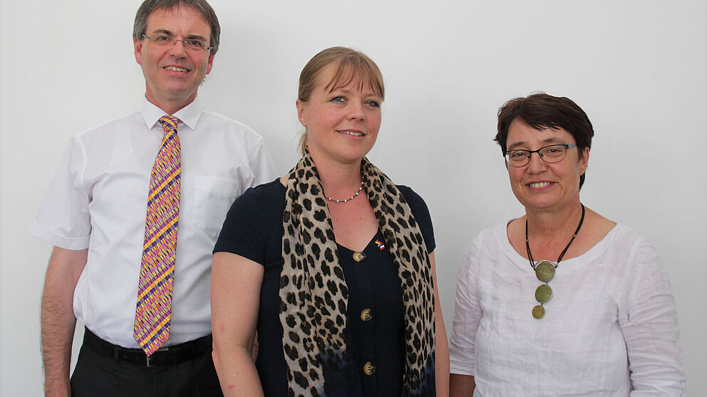 Foto (Universität Paderborn, Jennifer Strube): Die französische Generalkonsulin, Dr. Olivia Berkeley-Christmann (Mitte), wurde an der Universität Paderborn von Prof. Dr. Birgitt Riegraf, Universitäts-Präsidentin (rechts), und Prof. Dr. Torsten Meier, Vizepräsident für Internationale Beziehungen, empfangen.