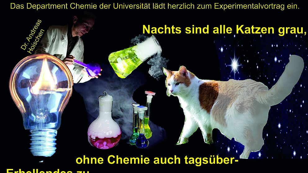 Was hat das bekannte Sprichwort „Nachts sind alle Katzen grau“ mit Chemie zu tun? Eine ganze Menge, wie die diesjährige Weihnachtsvorlesung von Dr. Andreas Hoischen am Donnerstag, 13. Dezember, um 18.15 Uhr im Audimax der Universität Paderborn zeigen wird.