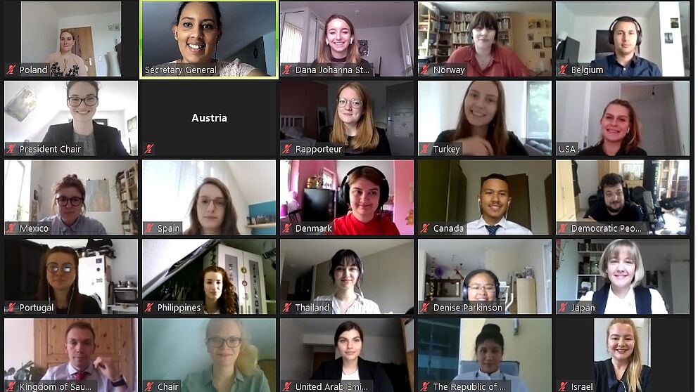 Foto (Jacqueline Linnemann): Studierende simulieren die Generalversammlung der Vereinten Nationen bei der ersten virtuellen „Model United Nations-Konferenz“ der Hochschulgruppe PaderMUN.