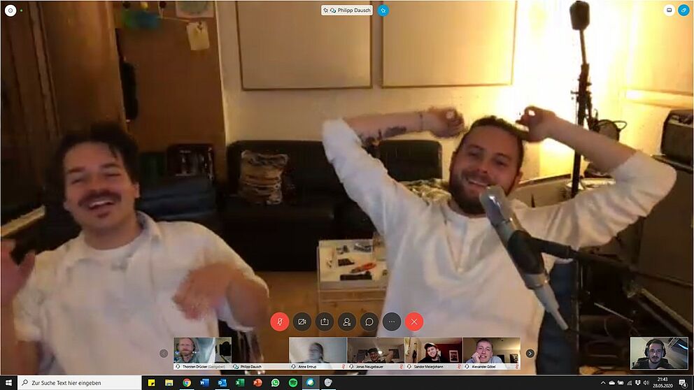 Foto (Universität Paderborn, Joshua Wick): Die Mitglieder der Band „Milky Chance“ Clemens Rehbein und Philipp Dausch im Chat mit Studierenden der Universität Paderborn.