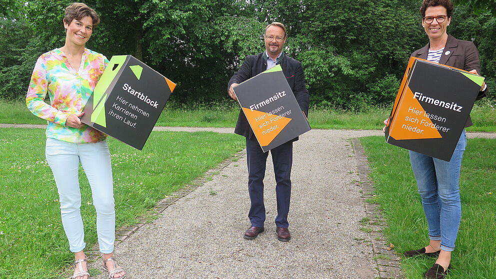 (v. l. n. r.) Katja Urhahne, Geschäftsführerin der Stiftung Studienfonds OWL, Elmar Kloke, Vorstandsvorsitzender Bürgerstiftung Paderborn und Dr. Claudia Beverungen, stellvertretende Vorstandsvorsitzende Bürgerstiftung Paderborn, freuen sich auf die Zusammenarbeit.